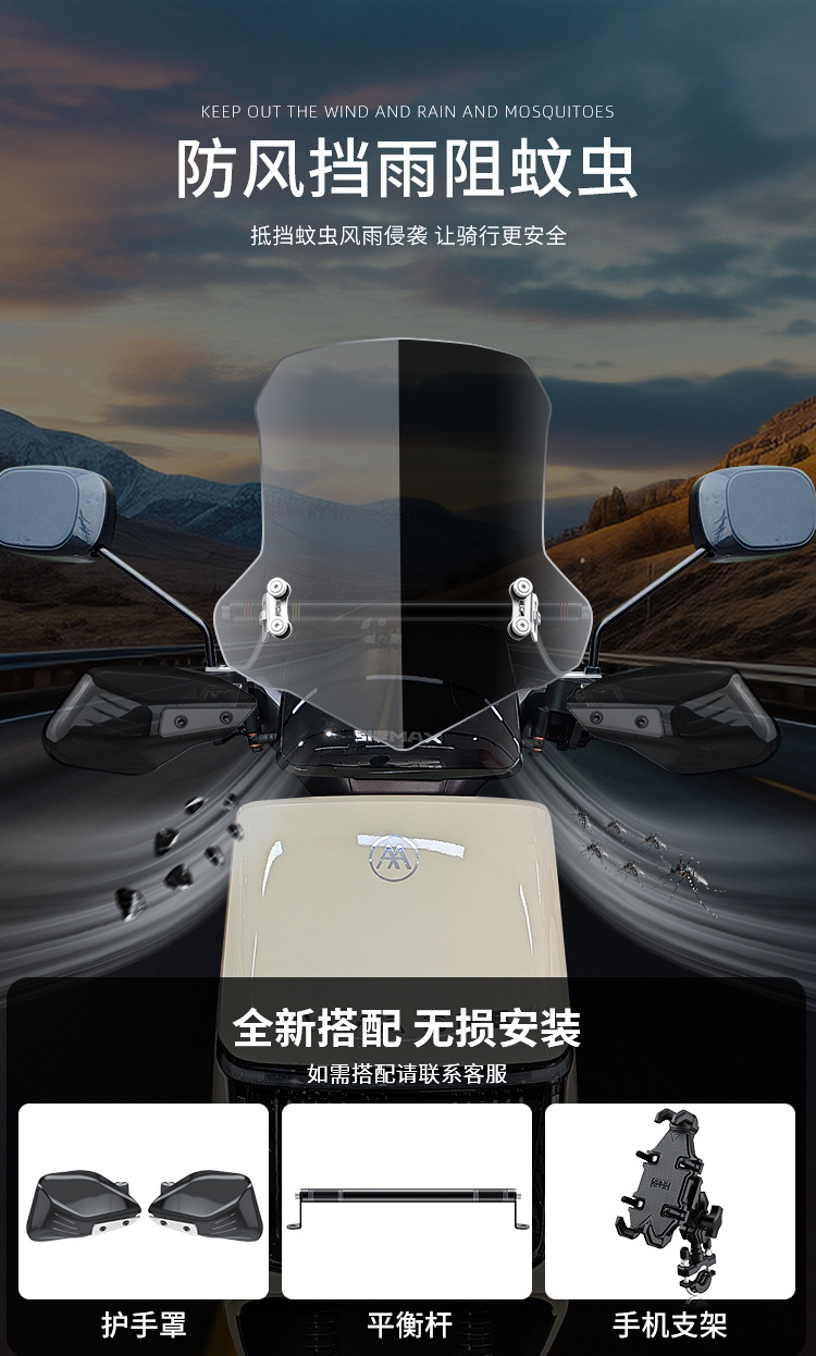 Aplicable para amortiguador para automóviles eléctricos, piezas de modificación universales, parabrisas delantero, acessorios de motocicleta