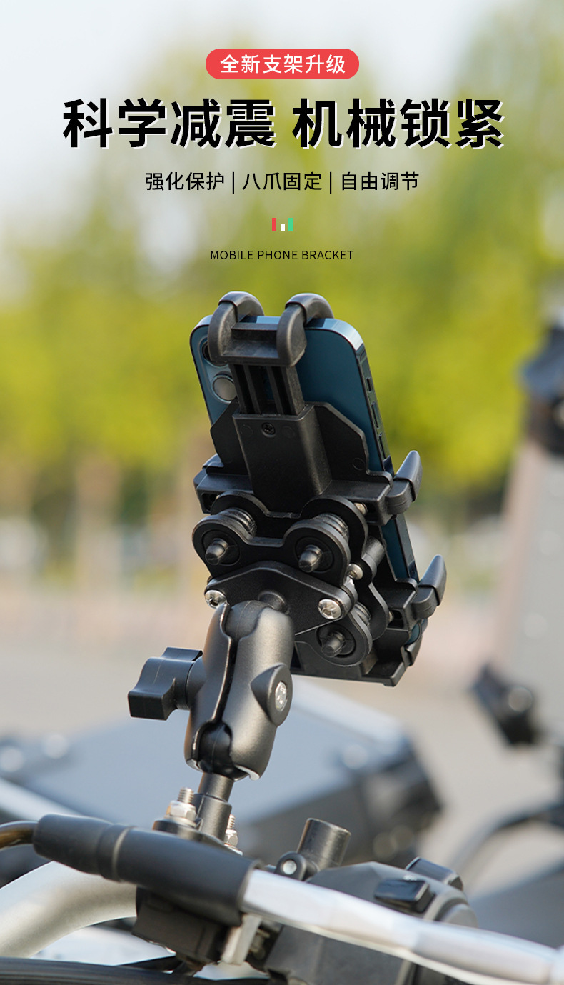 Motorcicleta de suministro directo amortiguador a prueba de choque soporte de teléfono móvil vehículo eléctrico montar para llevar soporte de navegación de ocho garras