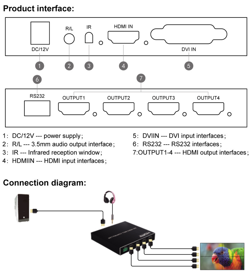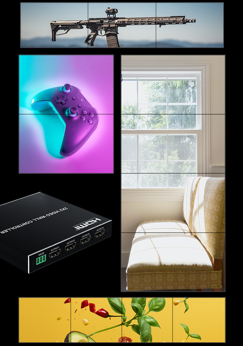 Transfronteriza Venta caliente HDMI uno-en-cuatro-salida TV controlador de pantalla de empalme de pared de cuatro imágenes pantalla HDMI máquina de empalme