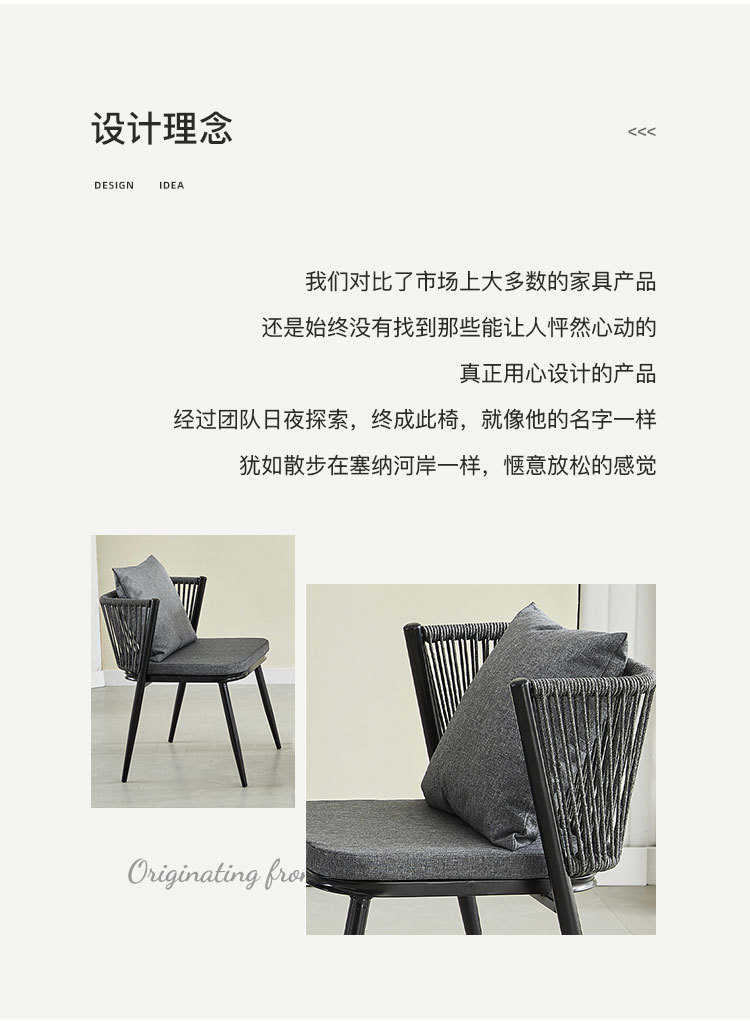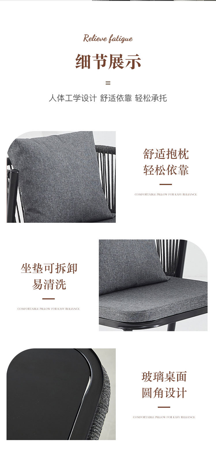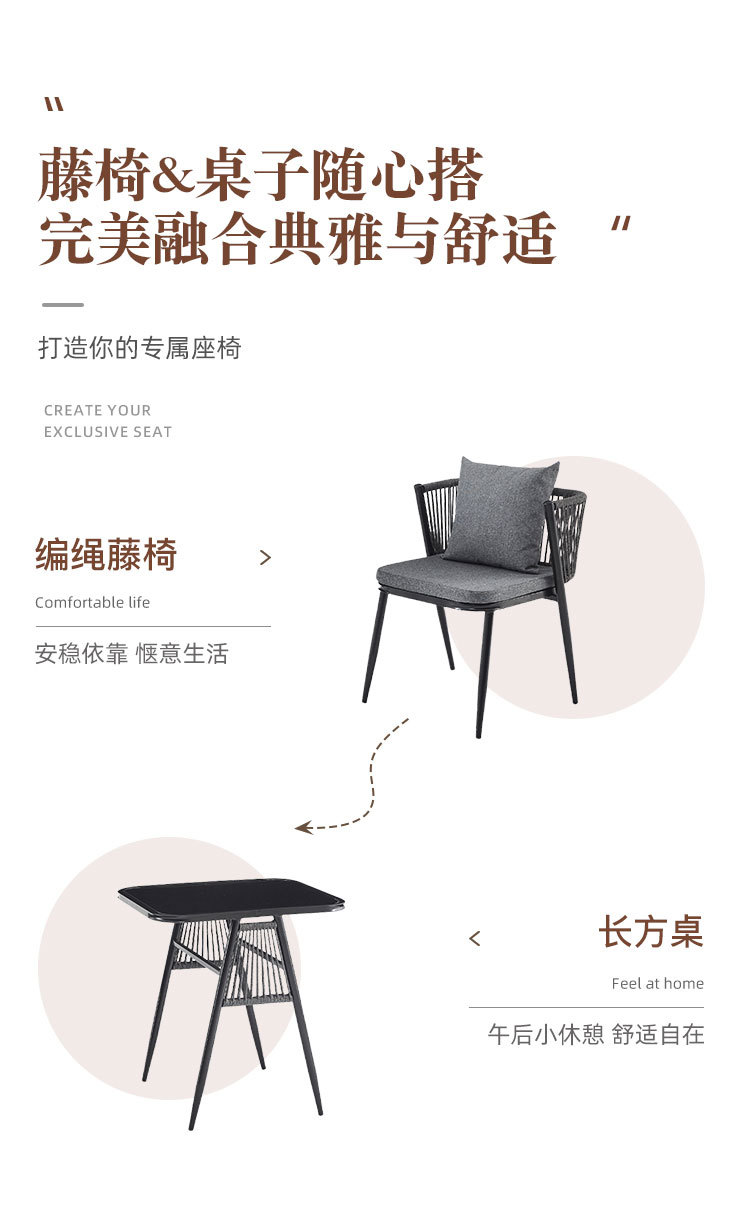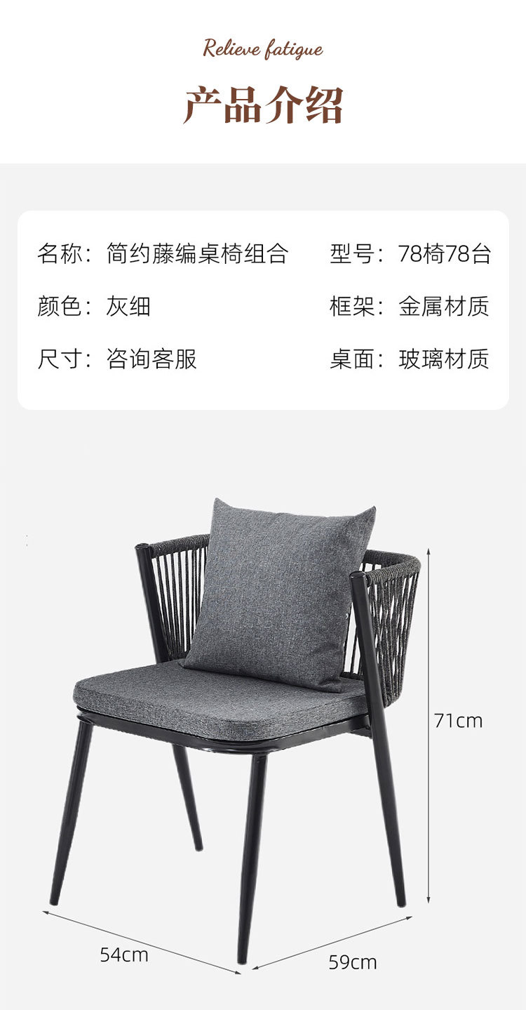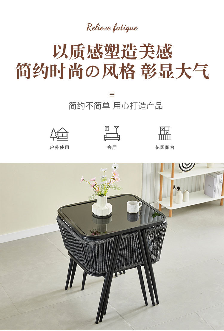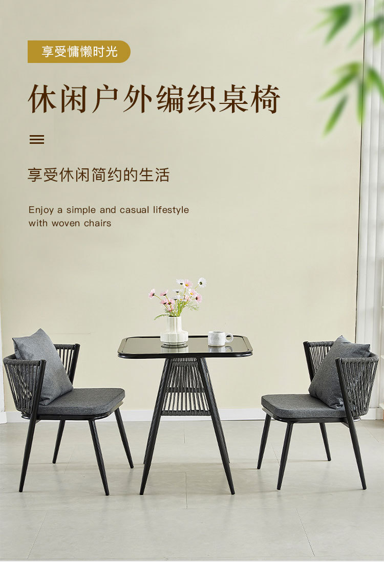 Moderno simple balcón al aire libre mesa y silla de caña combinación patio ocio de tres piezas jardín set de mesa y silla de té