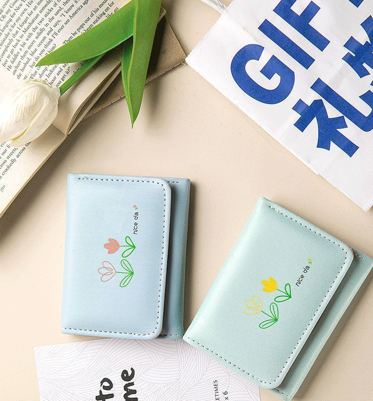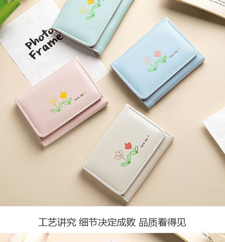 Tulipan bolso de cambio en simple lindas mujeres tres plegables corto multi-tarjeta bolso de tarjetas 2 - en - 1