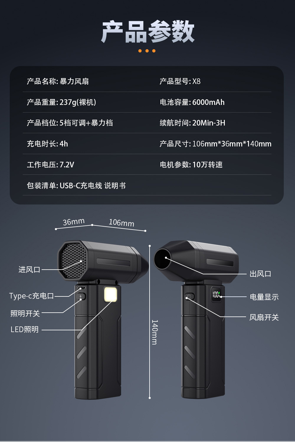 Explosiones transfronterizas violentas de mano pequeño ventilador turbo acampado mini nieve soplador portátil