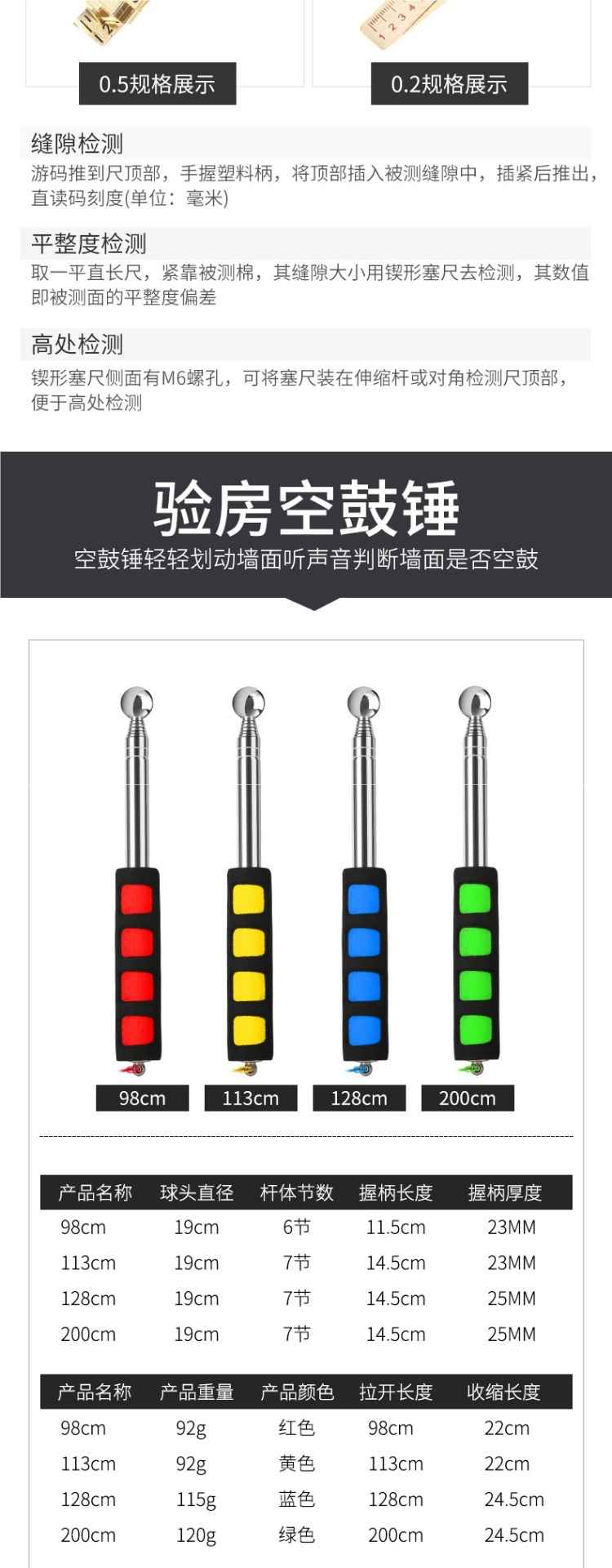 Kit de herramientas de inspección de habitación decoración y aceptación tambor de sonido martillo de tambor vacío regla de ángulo recto regla horizontal instrumento de inspección eléctrica detector de fase