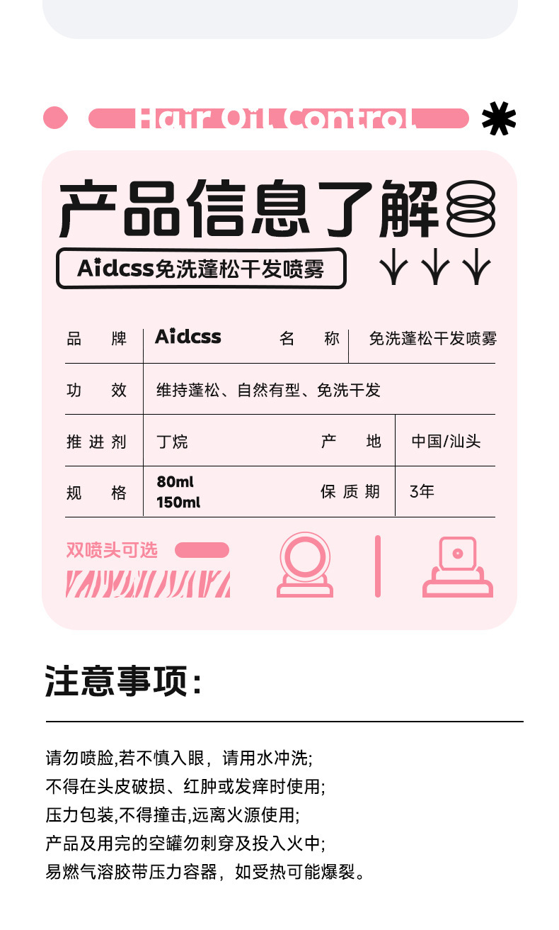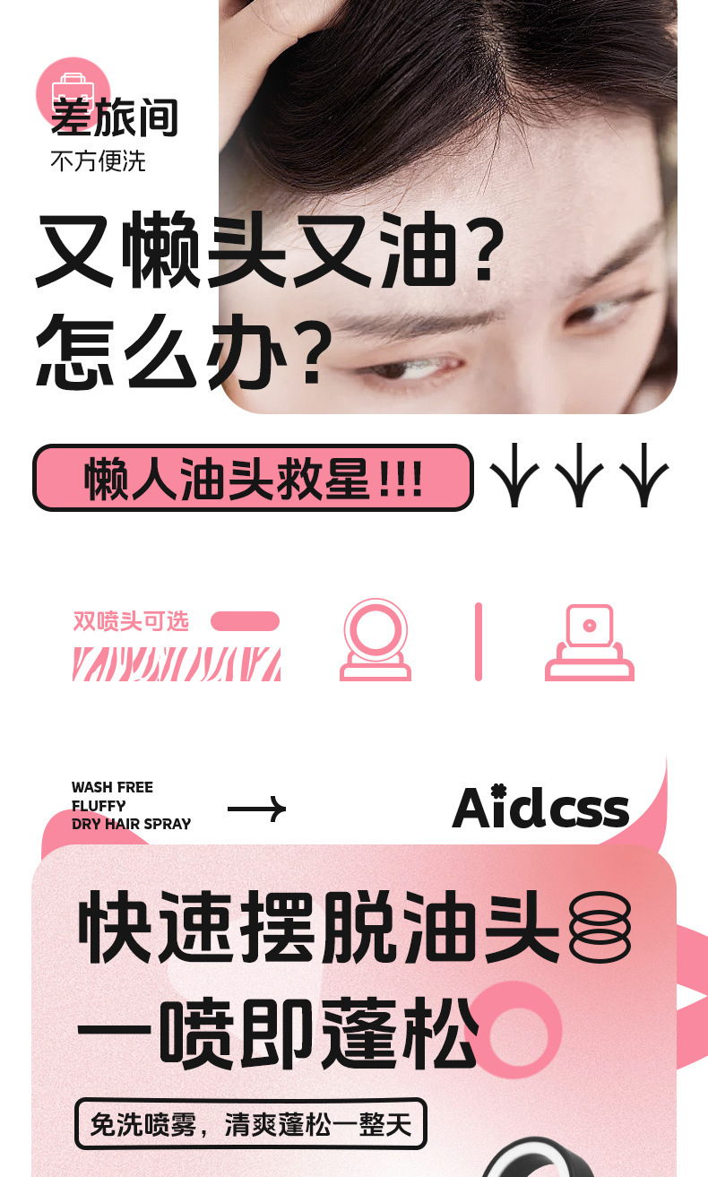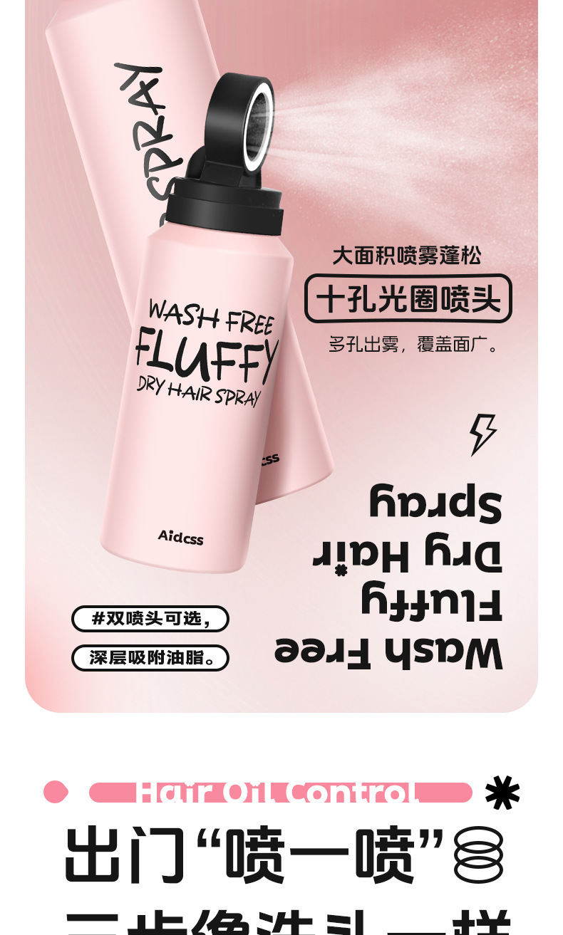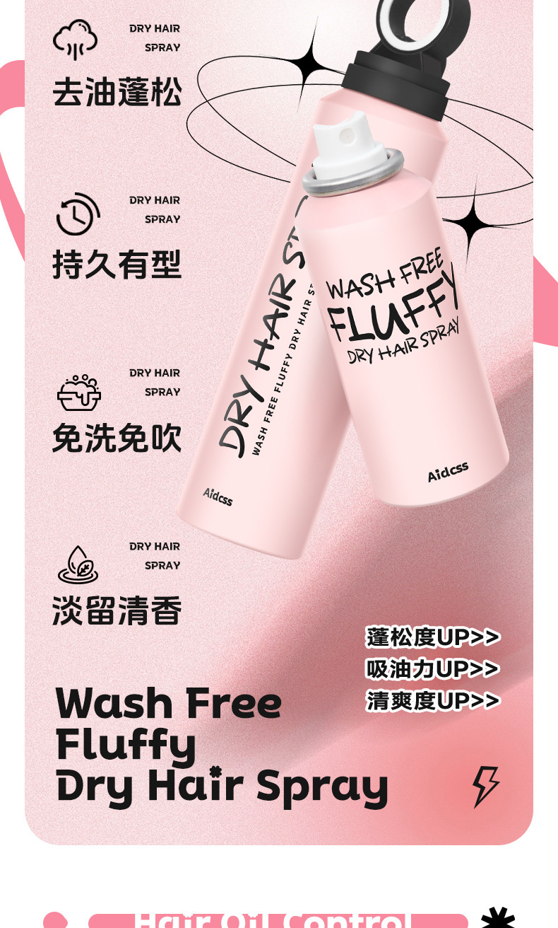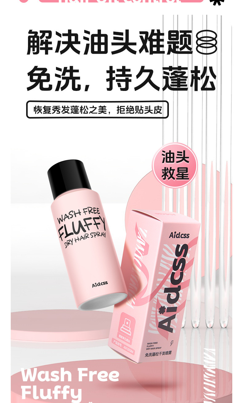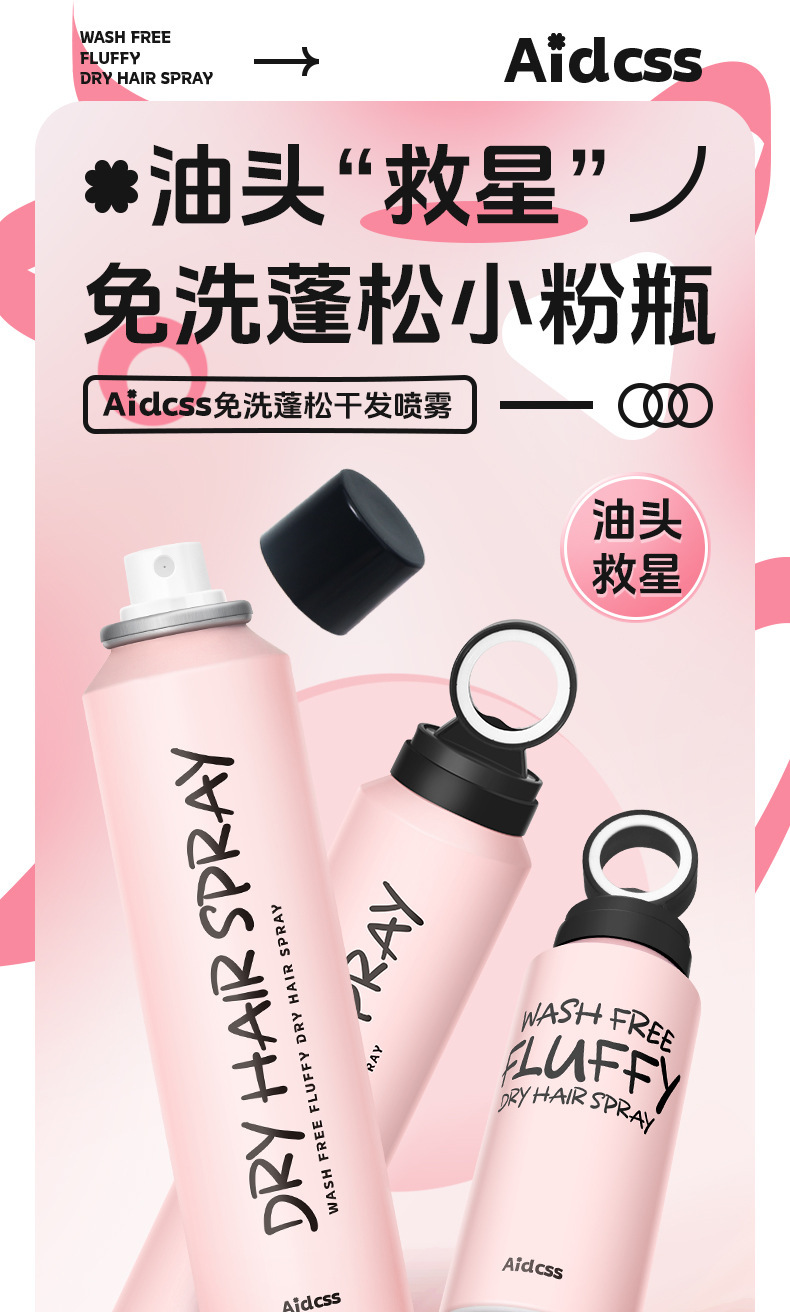 Aidcss no lavado fluffy hair dry spray no lavado refrescante polvo de polipropileno para el cuidado del cabello flojo al por mayor