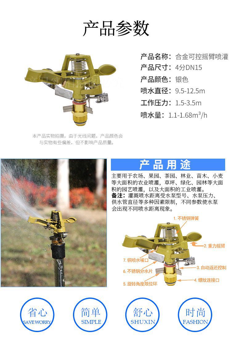 Cabeza de rociador de balancín de césped de riego por aspersión de aleación para paisajismo Cabeza de rociador giratoria automática de 360 grados Ángulo controlable 4 puntos
