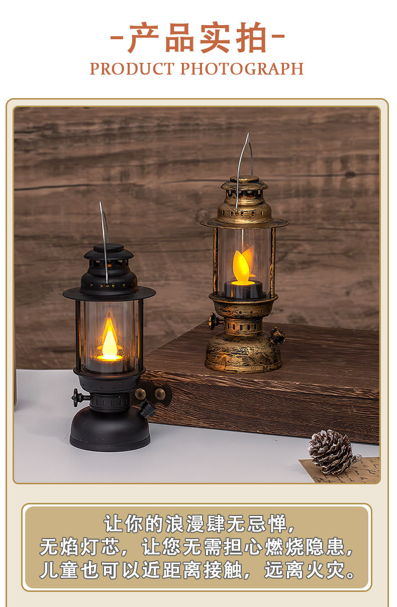 Vintage lámpara de queroseno vela electrónica luz de noche ambiente navideño vela led decoración decoración de mesa