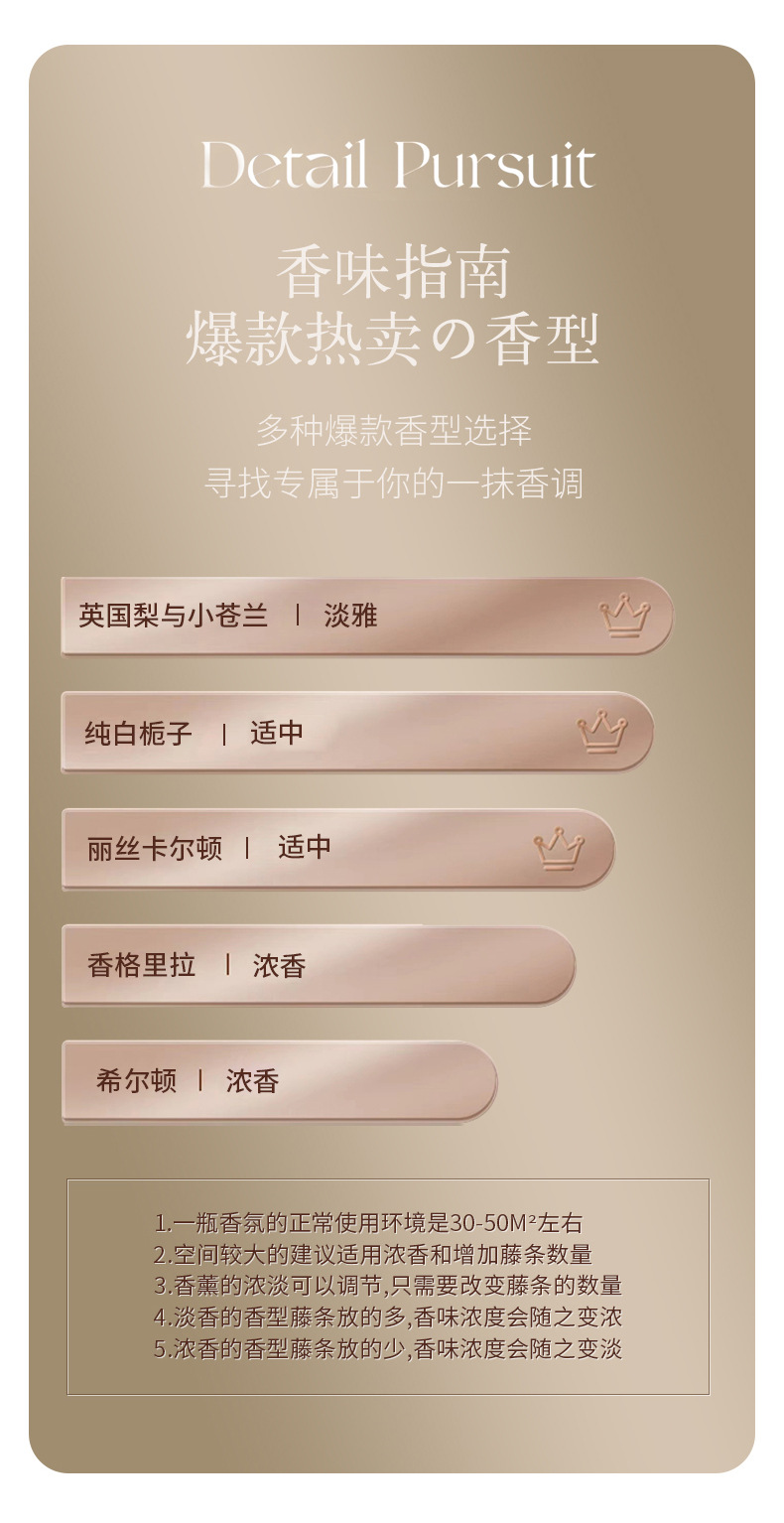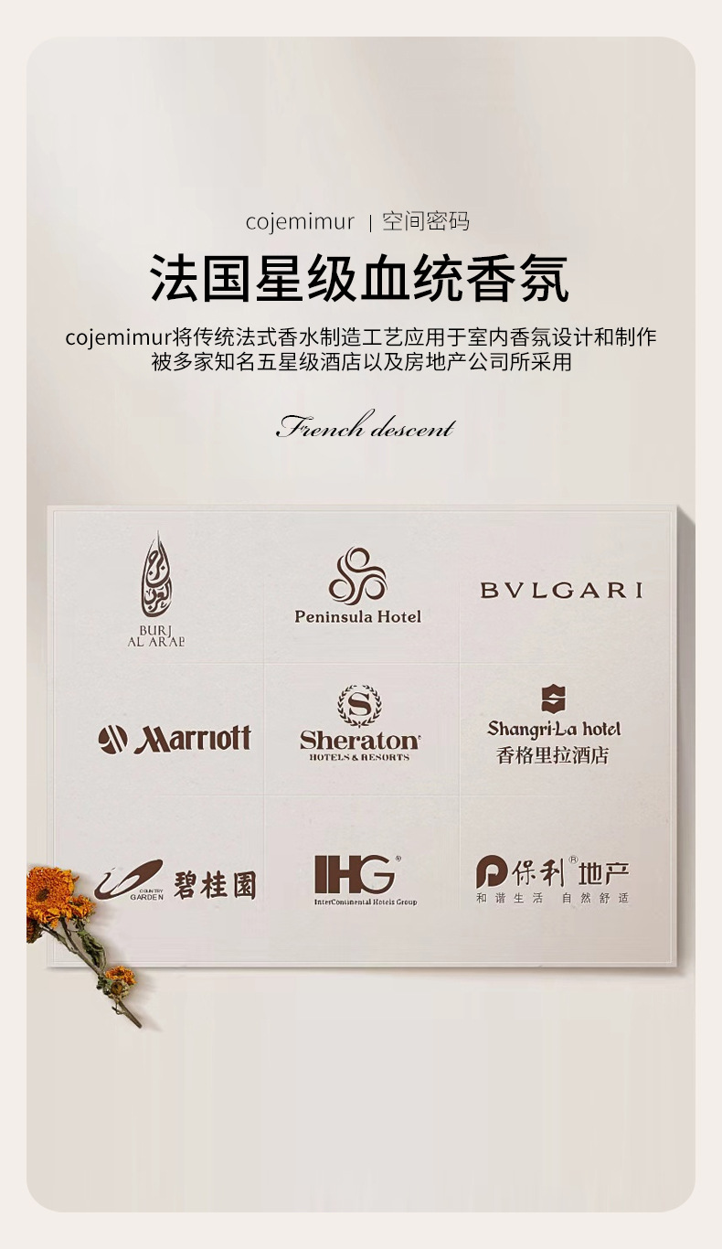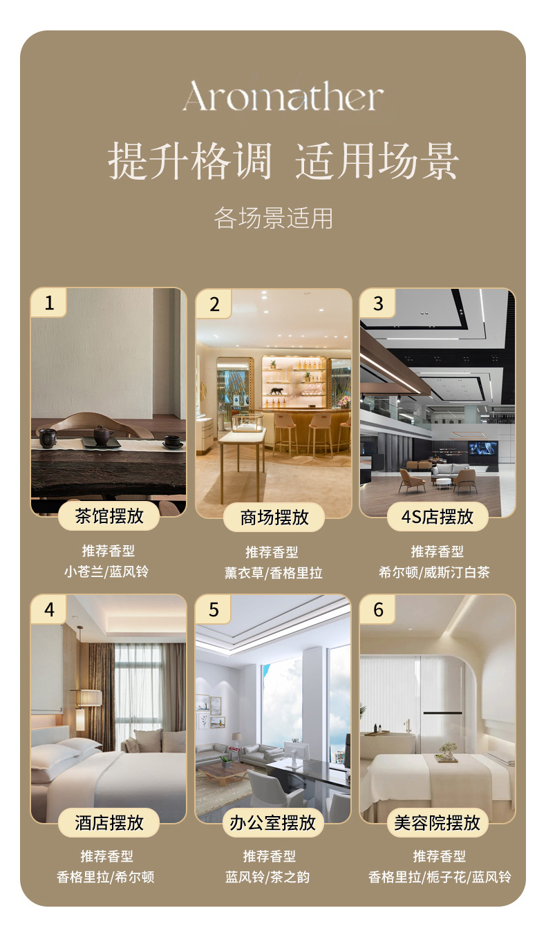 | Tipo fragante | Hilton ★ (fragancia de hotel premium), Shangri-La ★ (fragancia de hotel premium), té Zen de temporada completa ★ (fragancia de hotel premium), pera británica y orange ★ (fragancia de habitación), flores de gardenia ★ (reducción de flores de gardenia) recomendadas, té blanco Westin ★ (temperamento elegante), Liz Carlton ★ (fragancia de hotel premium) - recomendado, campana de viento azul ★ (fragancia de flores elegante), lluvia llena de flores ★ (fragancia de flores llena de casa), budista ★ (fragancia de fruta fresca), Macao Galaxy ★ (fragancia de hotel premium), Silver Mountain Spring ★ (tono de madera clara), Hong Kong Langhao ★ (tipo de fragancia de hotel superior), Sheraton ★ (tipo de fragancia de hotel) recomendado, Dubai Sailing ★ (tipo de fragancia de hotel superior), Jasmine ★ (tipo de fragancia de flores) |
