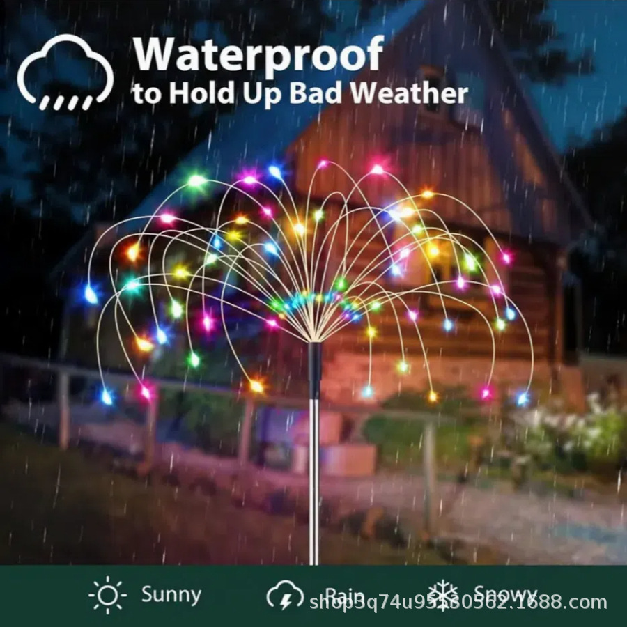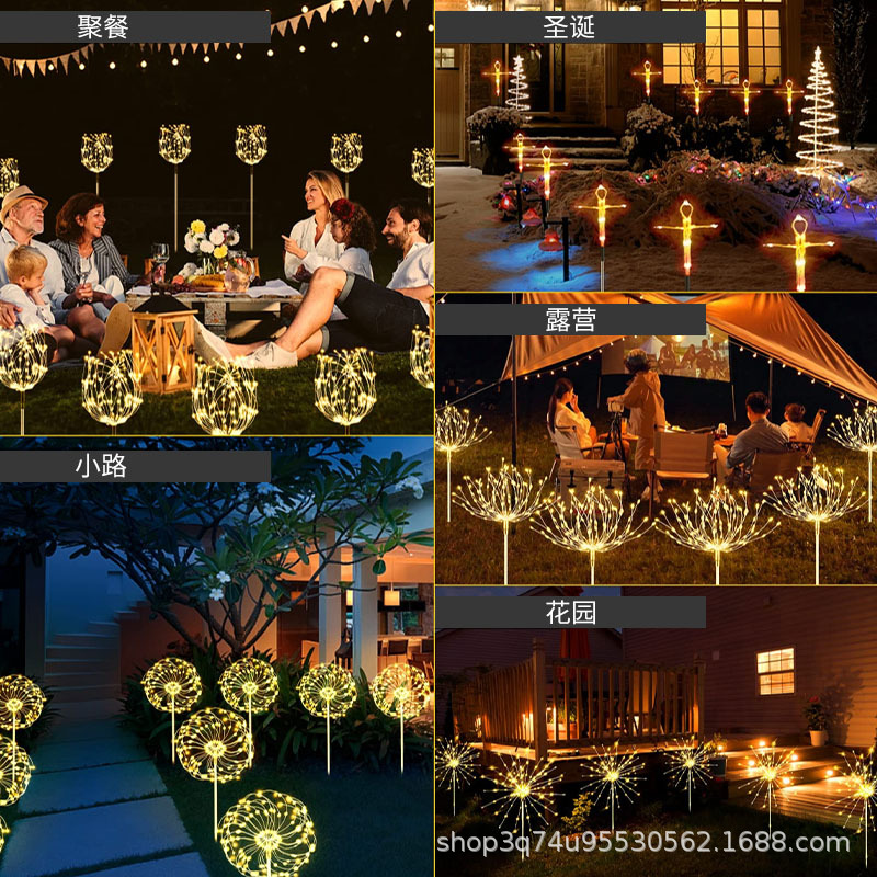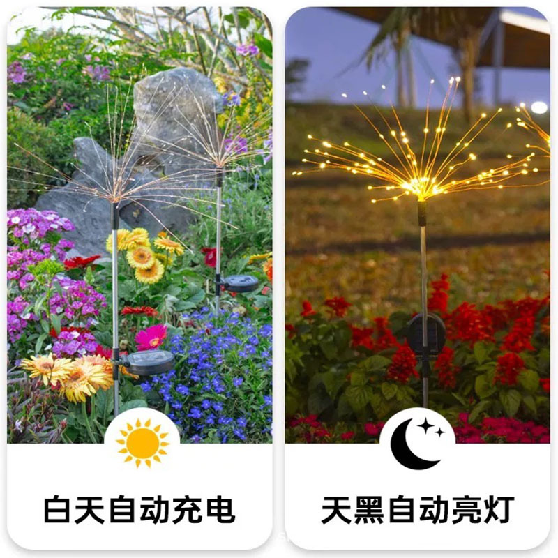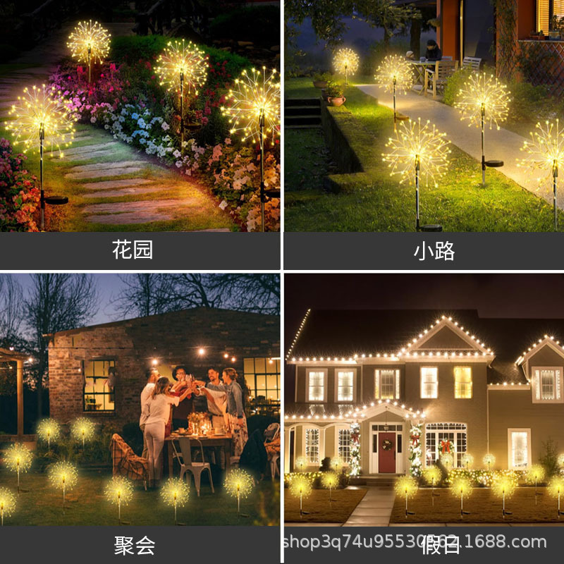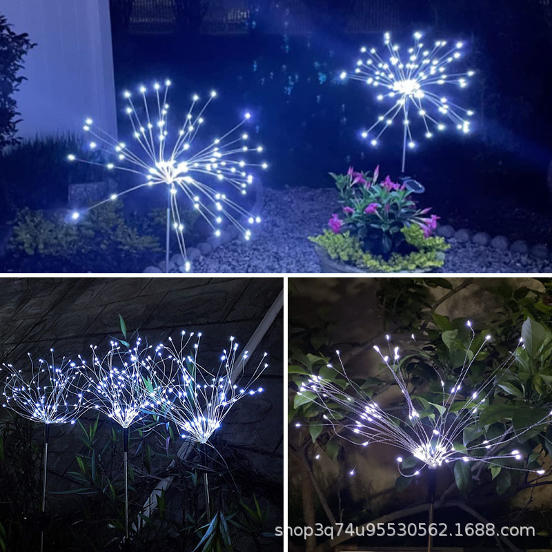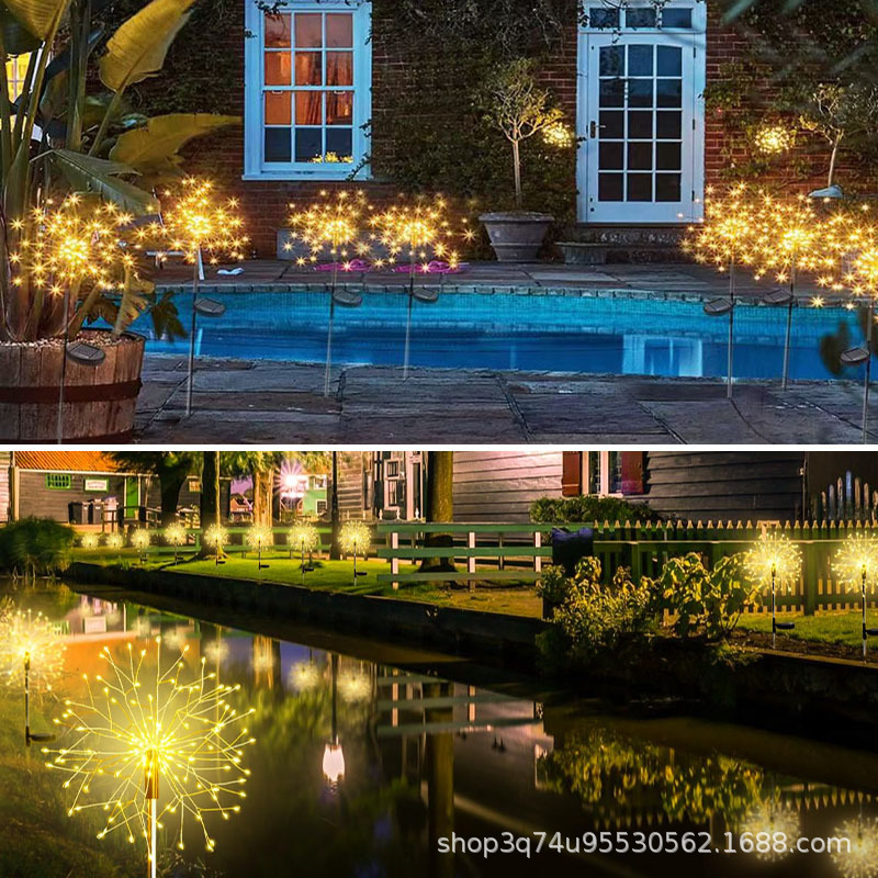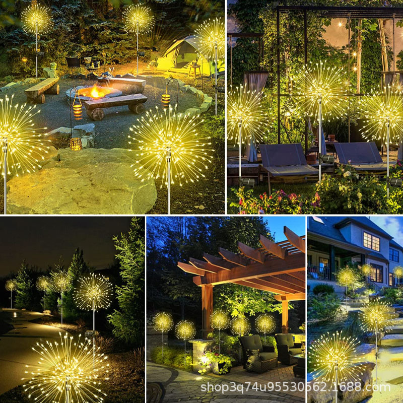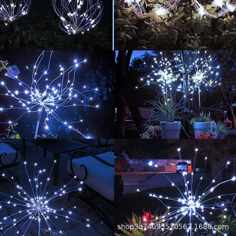 Fuegos artificiales de energía solar diente de león de luz de atmósfera festiva luz decorativa al aire libre impermeable estrella de cobre lámpara de color