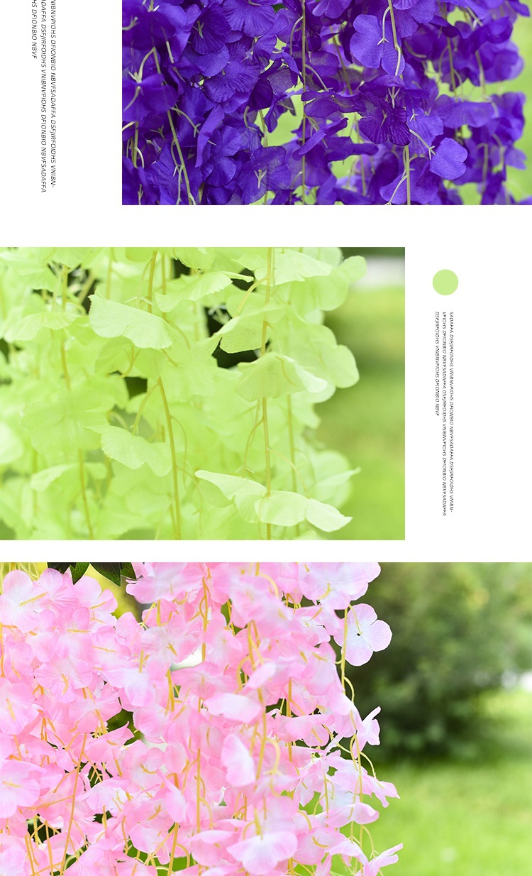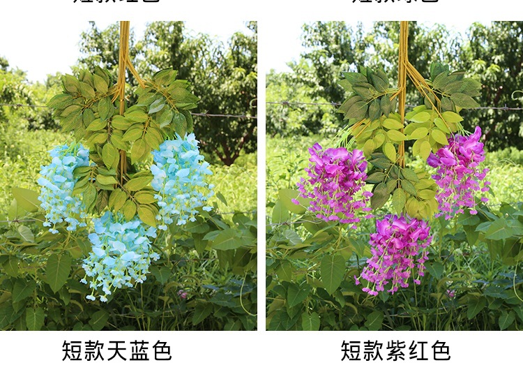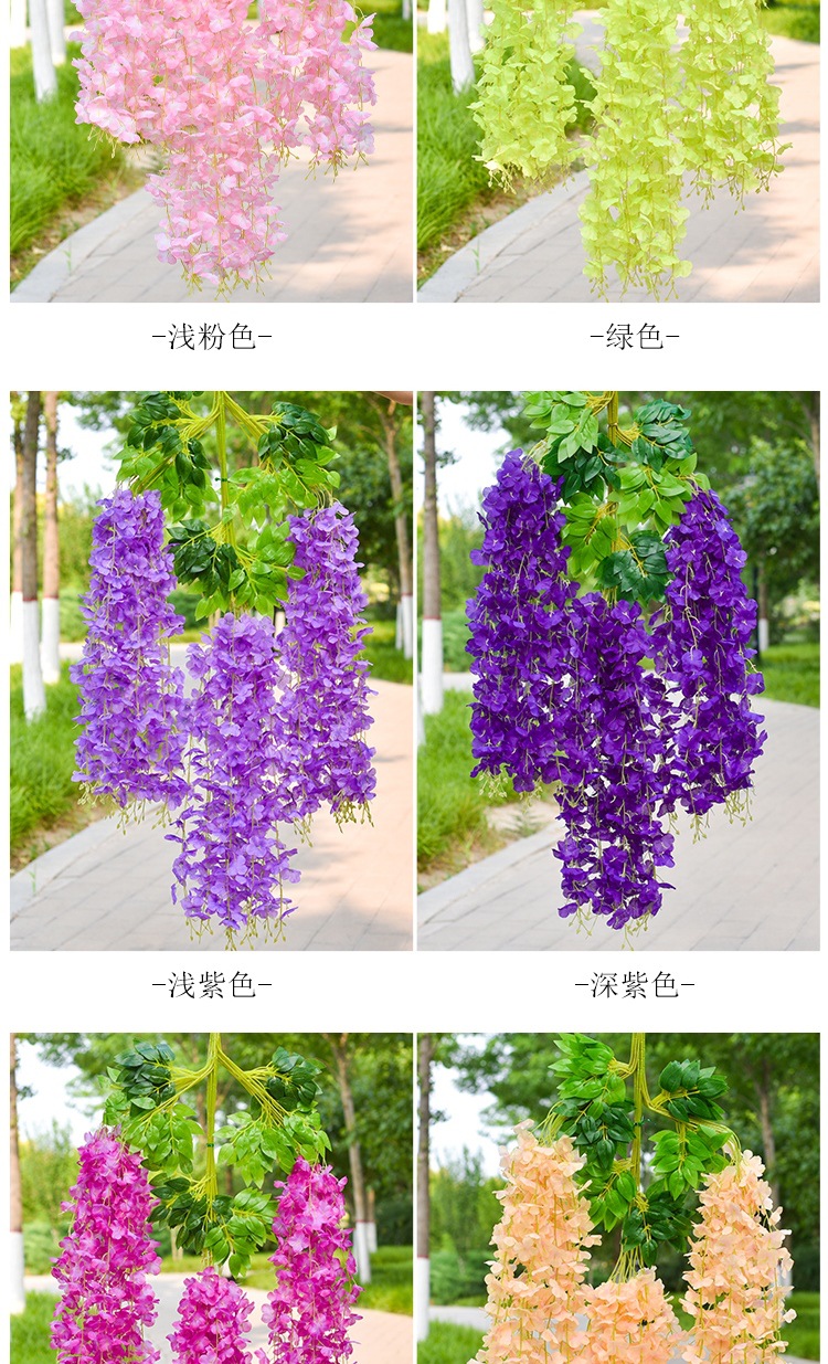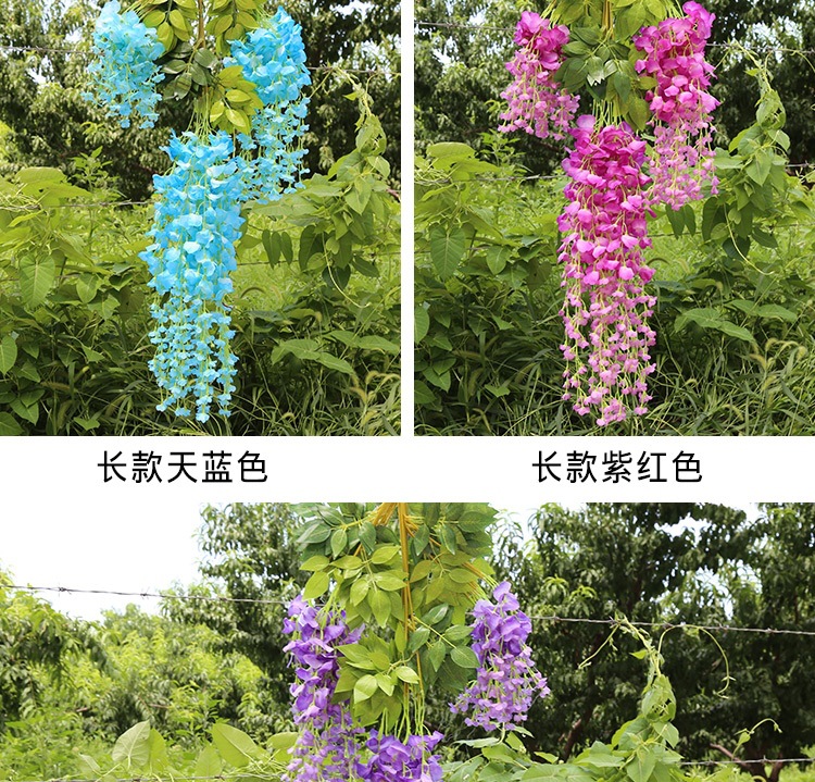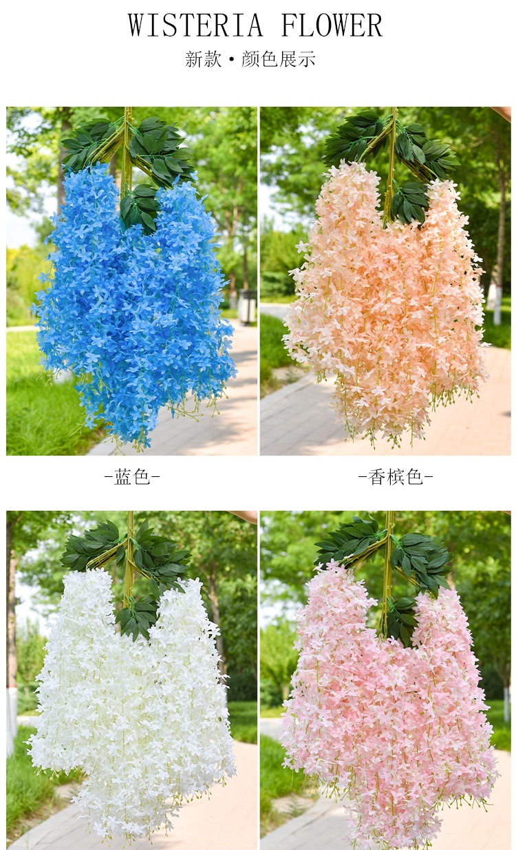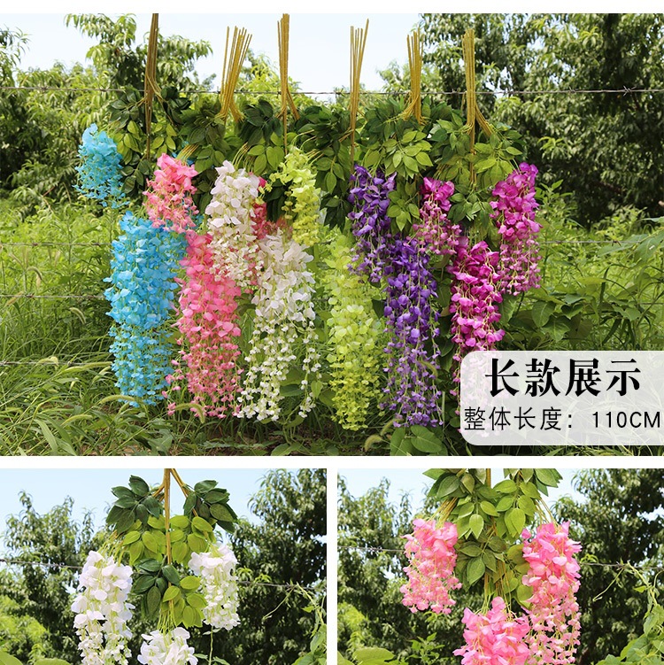 Flor de glicina de simulación al por mayor decoración flor colgante flor falsa ratán violeta techo de boda enredadera de plástico planta colgante