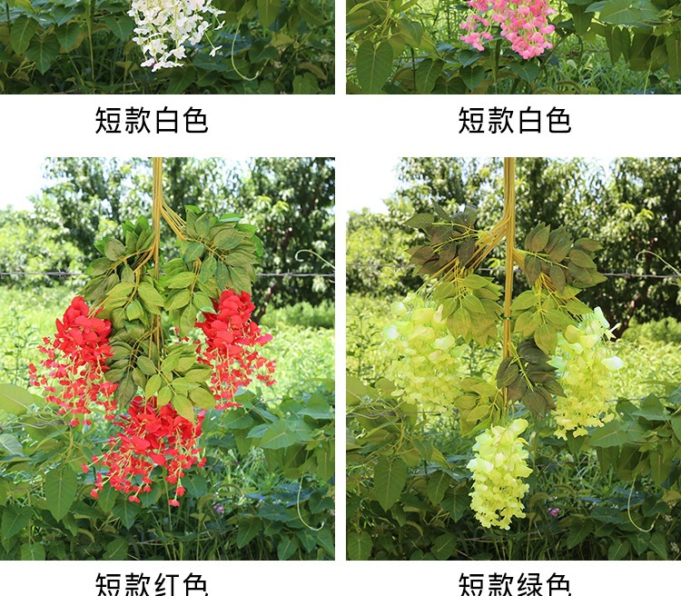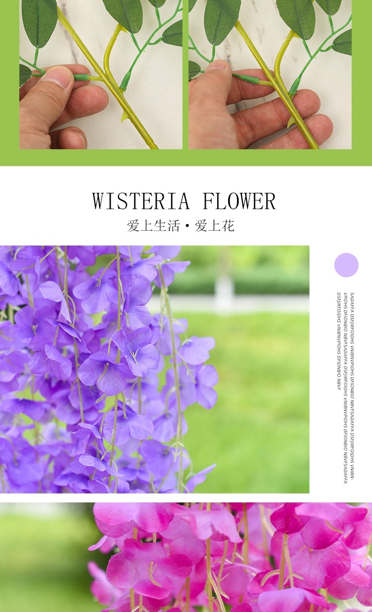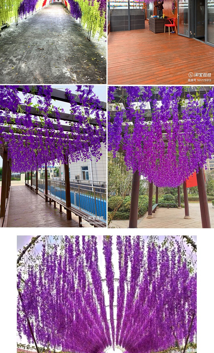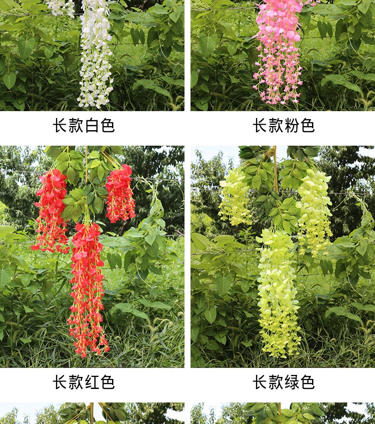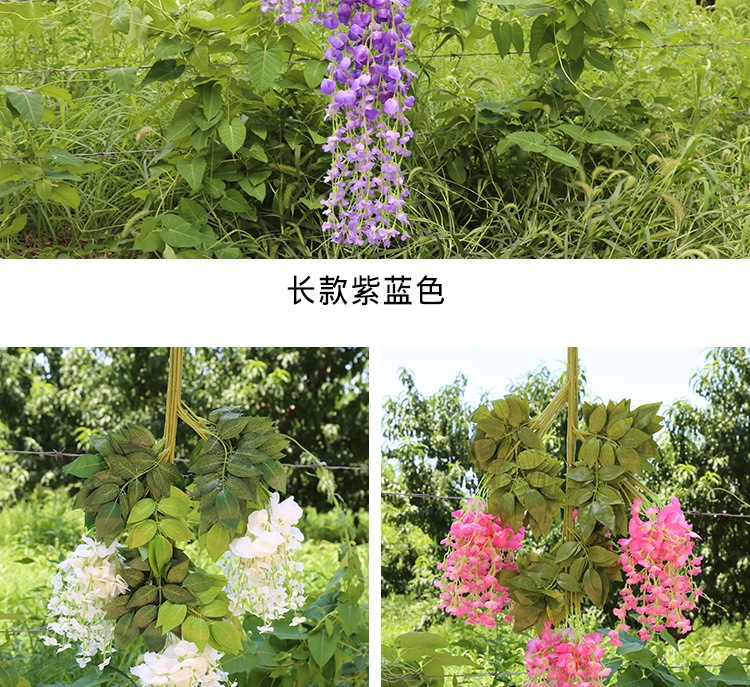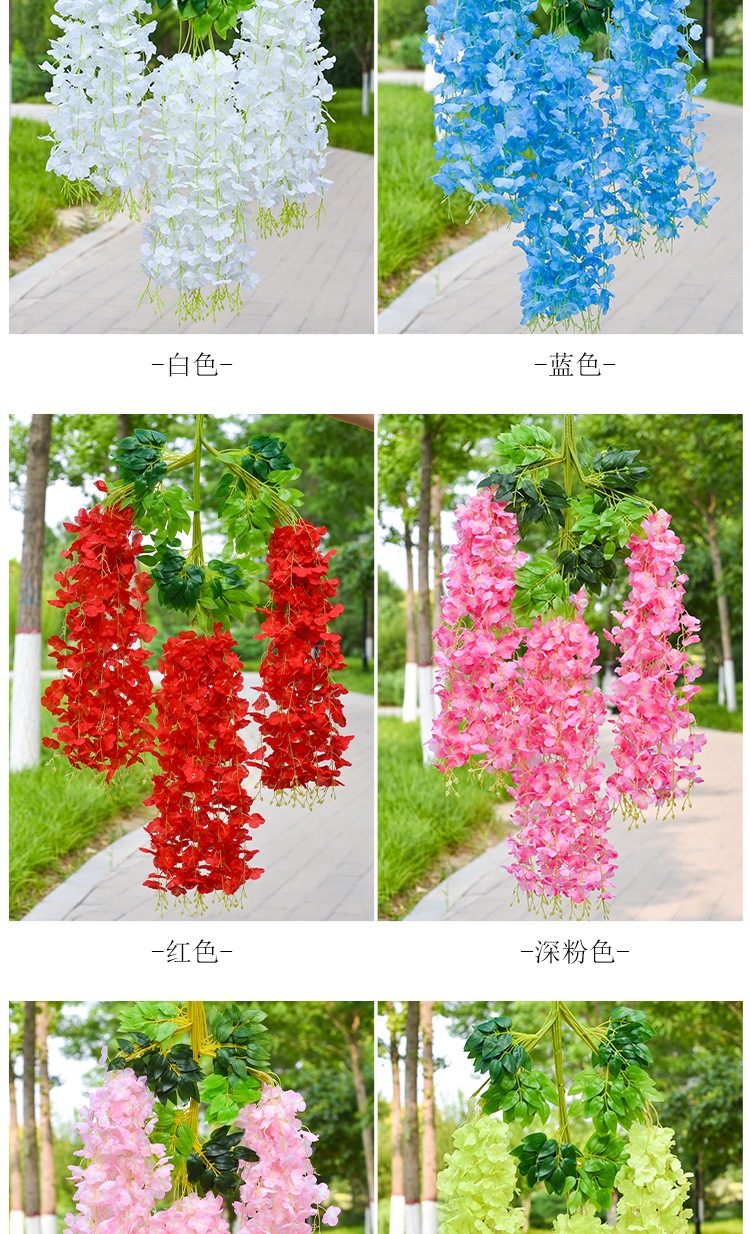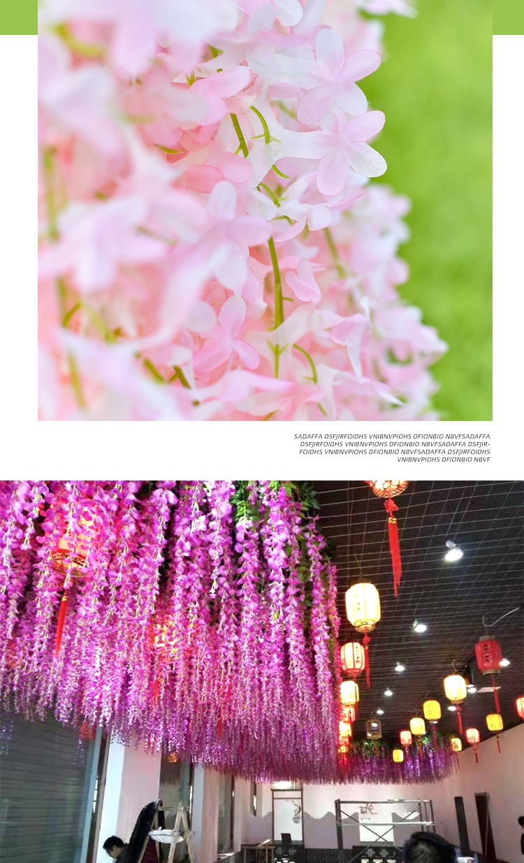 Flor de glicina de simulación al por mayor decoración flor colgante flor falsa ratán violeta techo de boda enredadera de plástico planta colgante