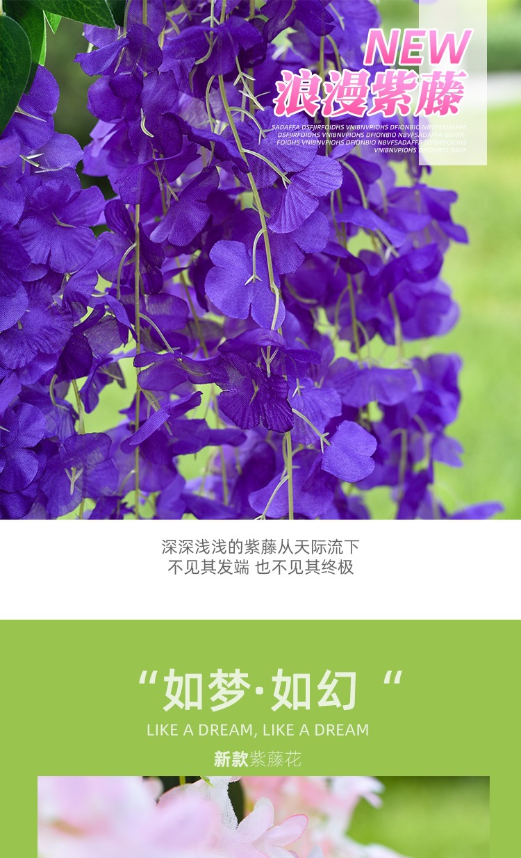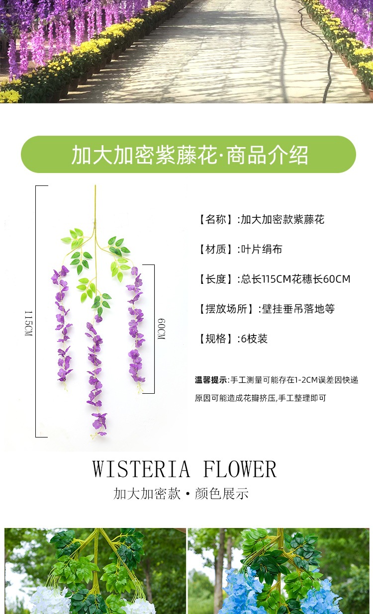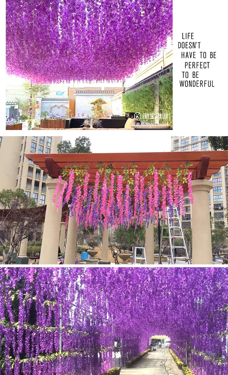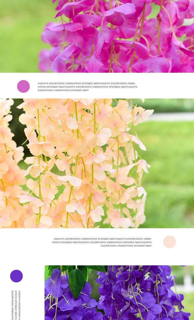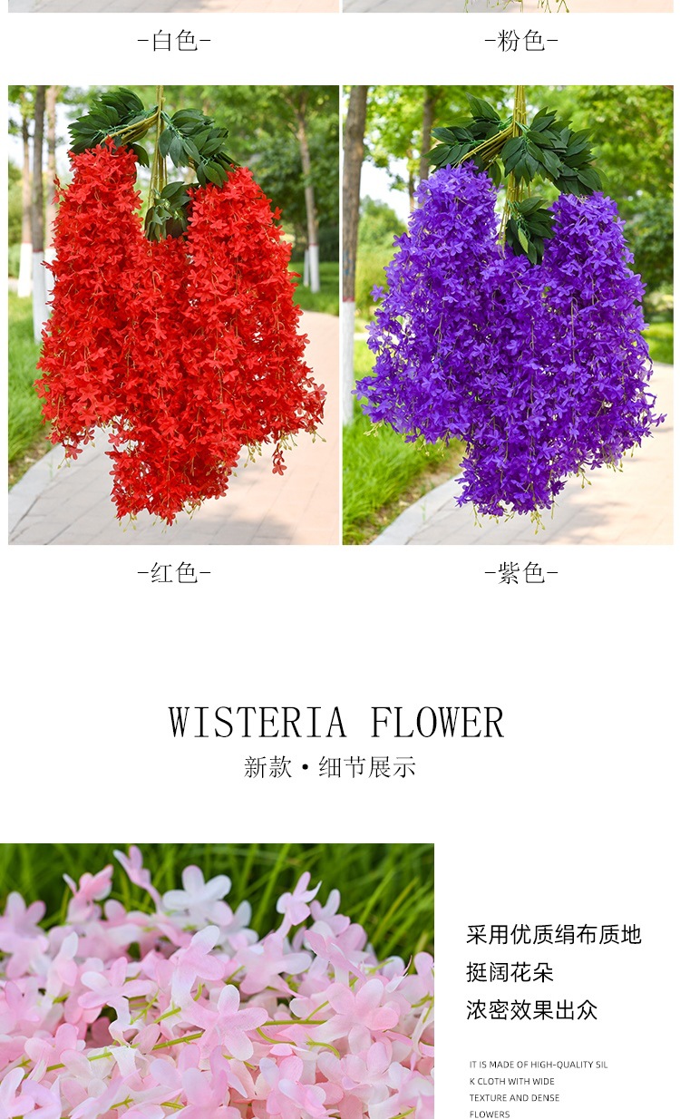 Flor de glicina de simulación al por mayor decoración flor colgante flor falsa ratán violeta techo de boda enredadera de plástico planta colgante