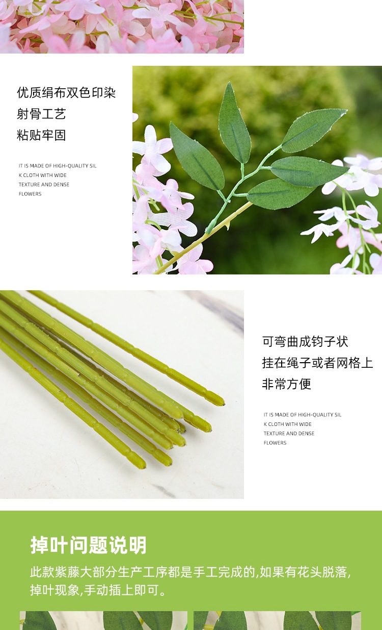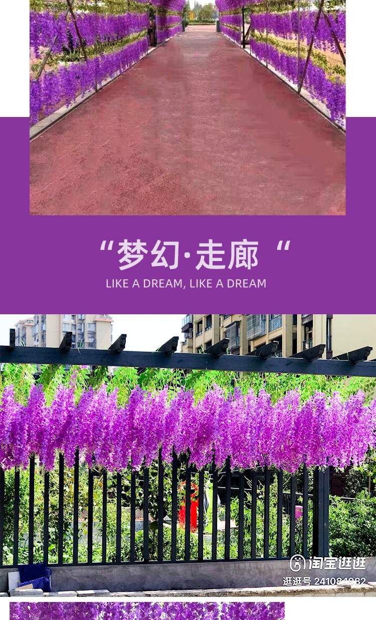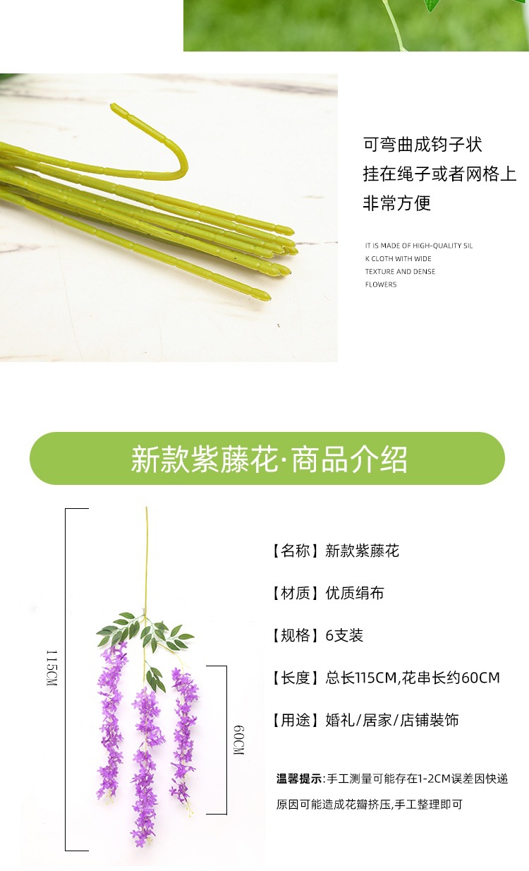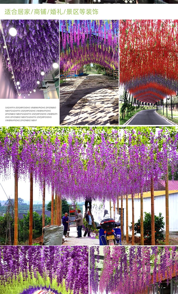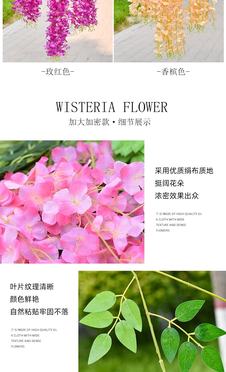 Flor de glicina de simulación al por mayor decoración flor colgante flor falsa ratán violeta techo de boda enredadera de plástico planta colgante