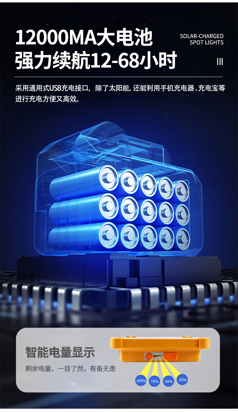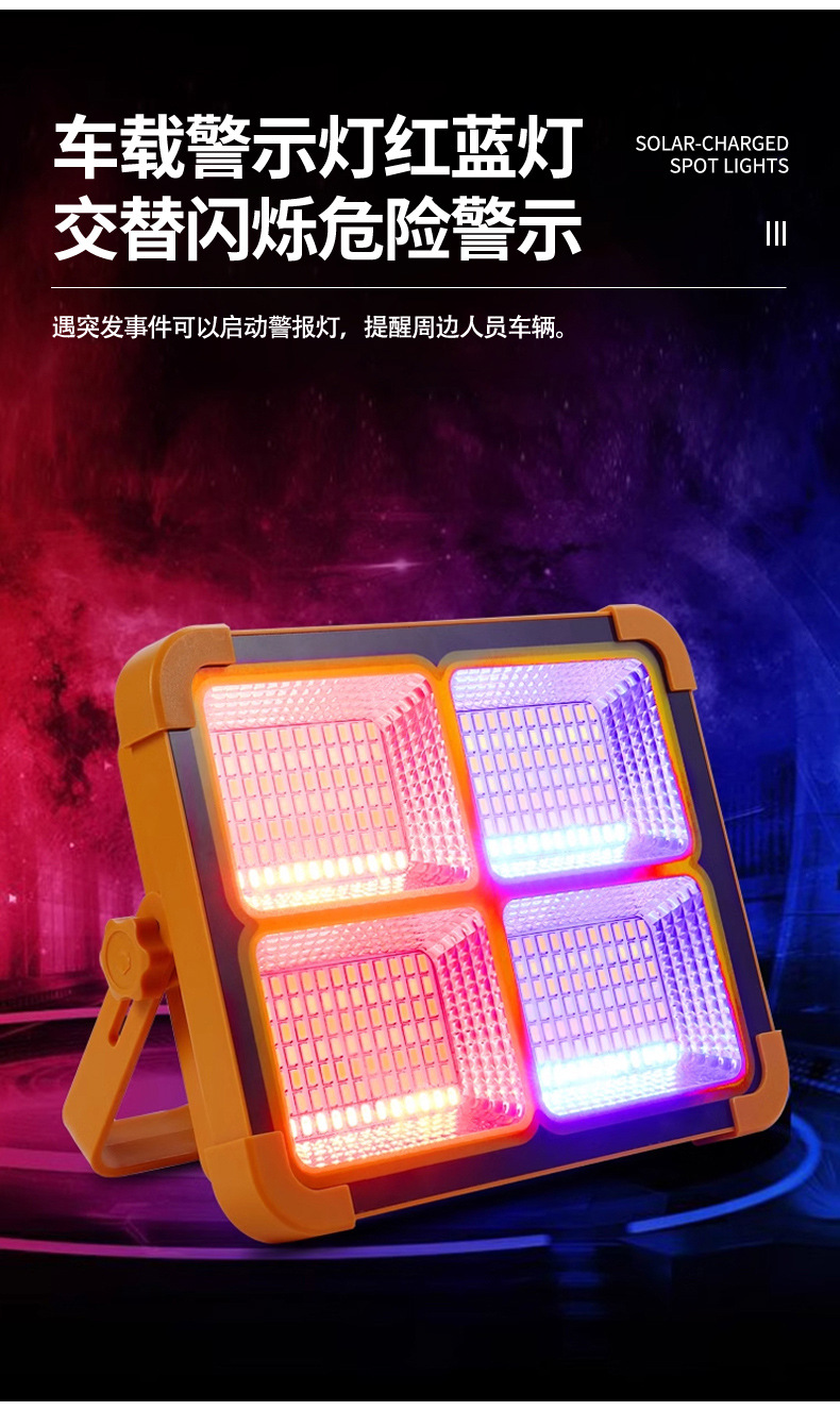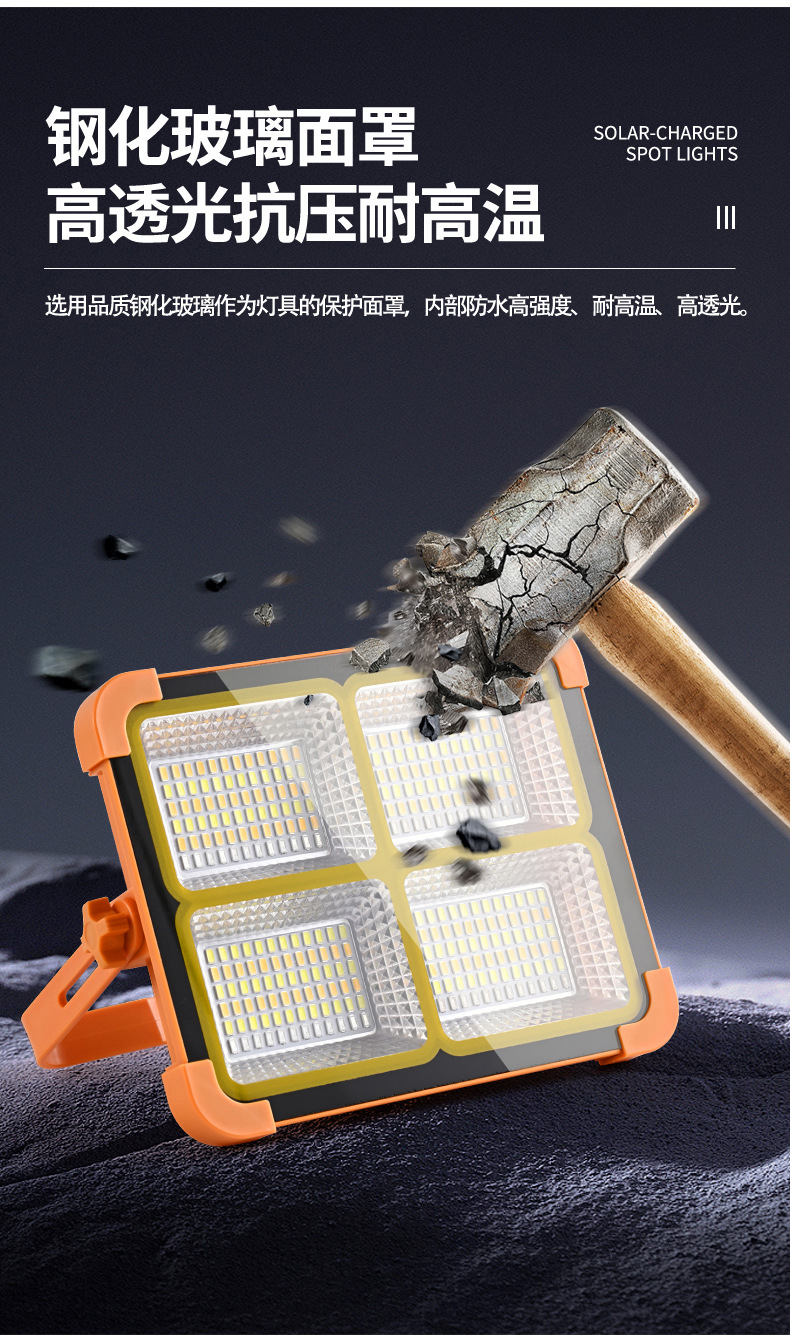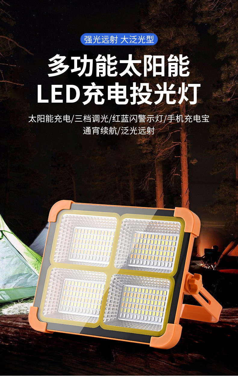 Reflector LED Solar de 4 Paneles, Impermeable, para Exteriores, Camping, Puesto de Mercado Nocturno, Luz de Emergencia, Iluminación, Foco