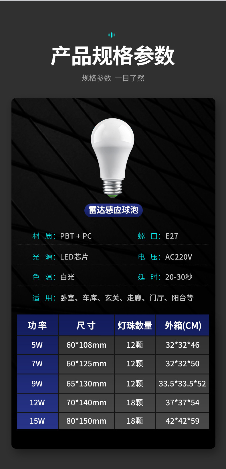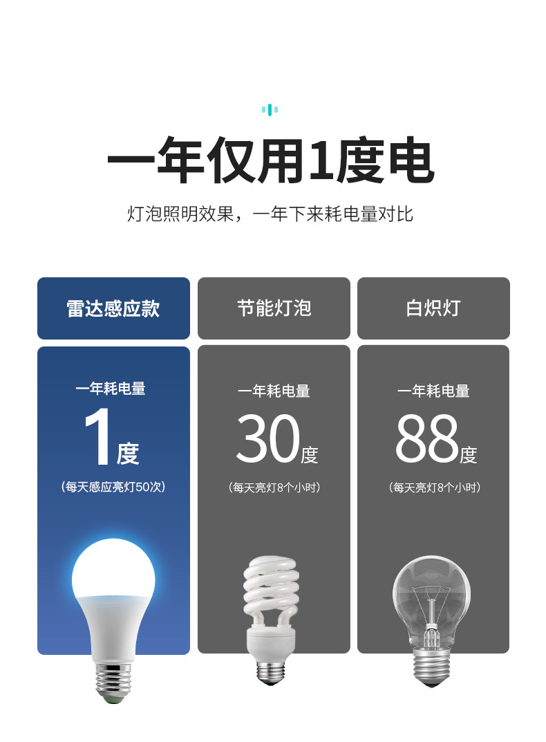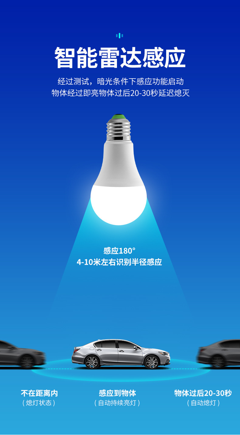 Bombilla LED con sensor de movimiento para el cuerpo humano, luz para pasillo activada por sonido, bombilla con sensor de radar controlada por radar, base de tornillo E27, sensor de radar de bajo consumo.