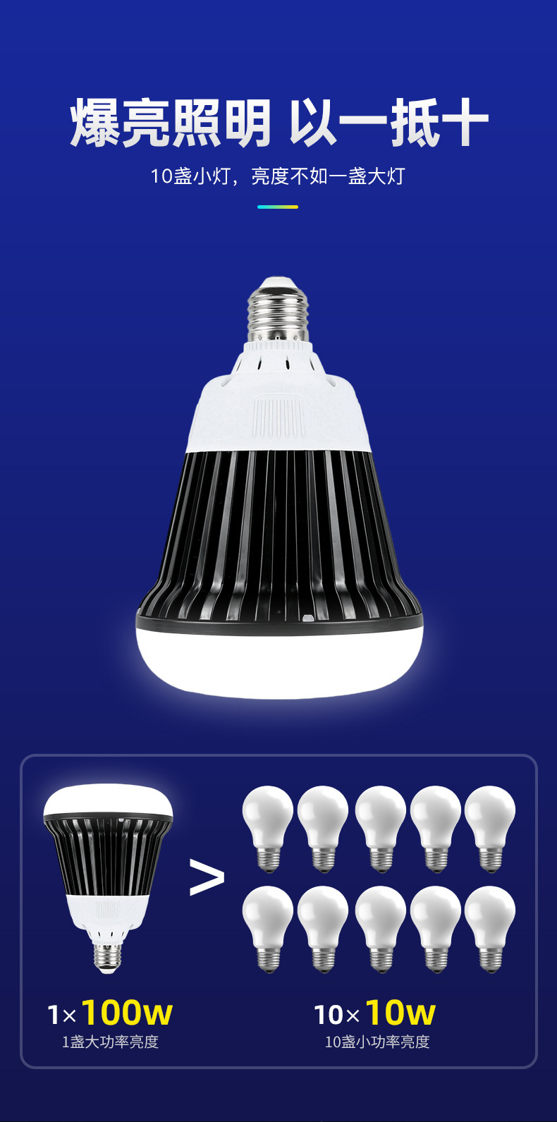 Bombilla LED de alta potencia con disipador de calor de aluminio, montaje de rosca E27, iluminación de ingeniería, lámpara industrial y minera, luz blanca, bombilla súper brillante