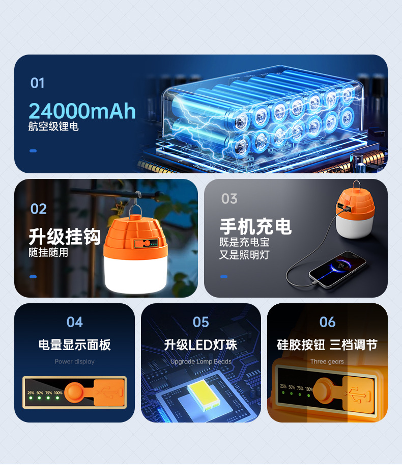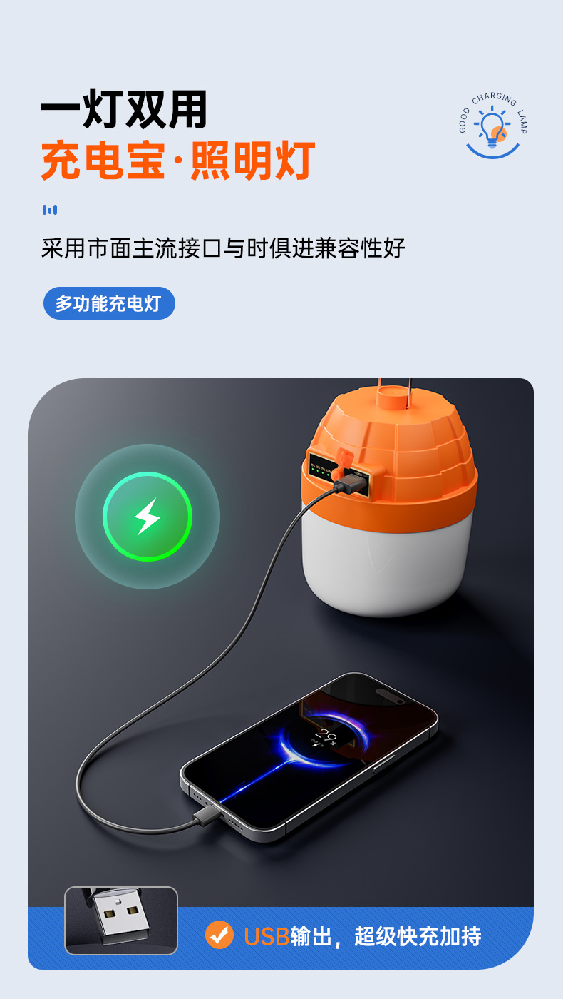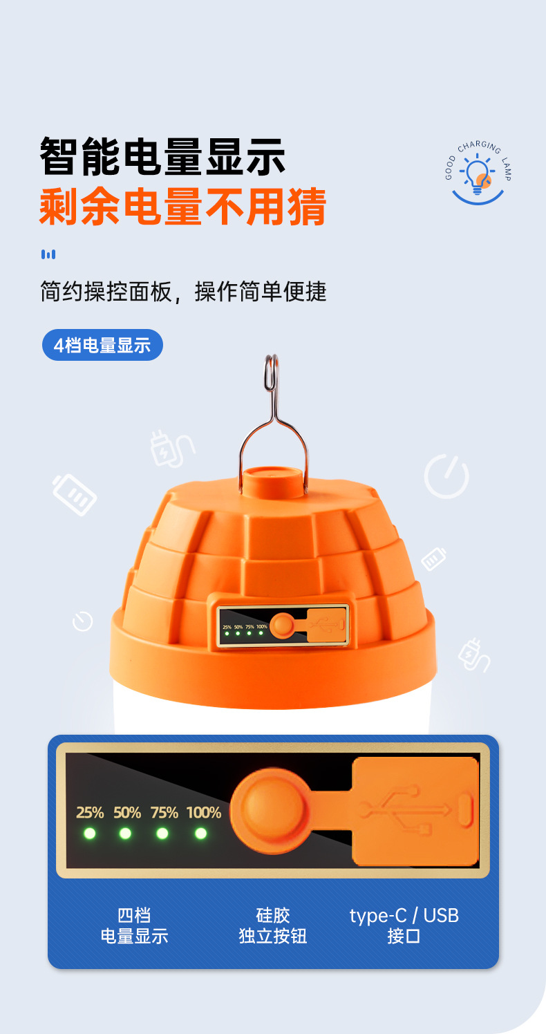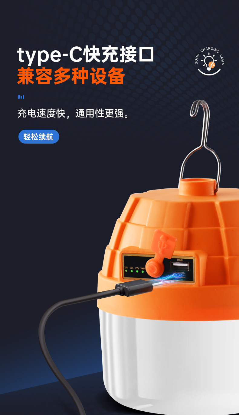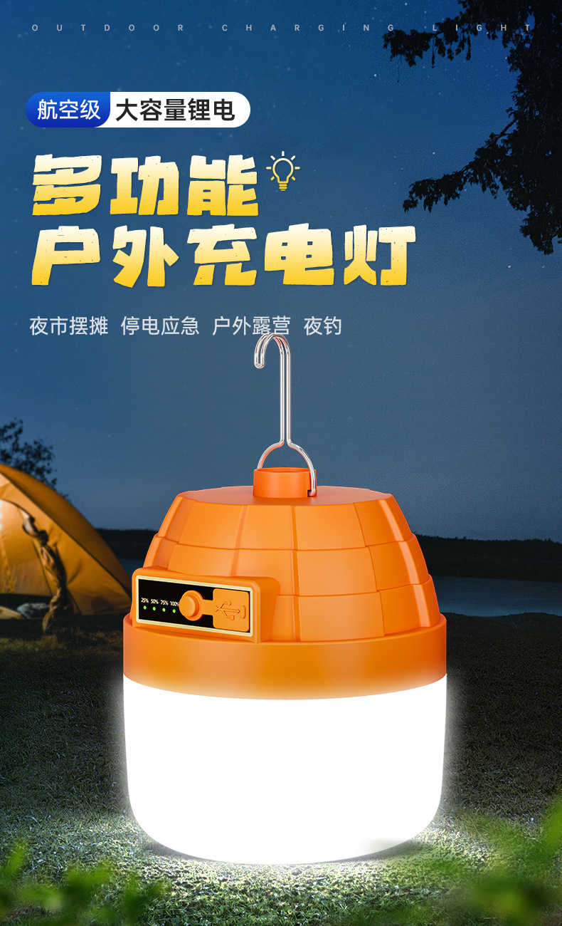 lámpara de iluminación recargable led camping al aire libre mercado nocturno super brillante lámpara de cabina de carga de emergencia lámpara de camping de larga duración