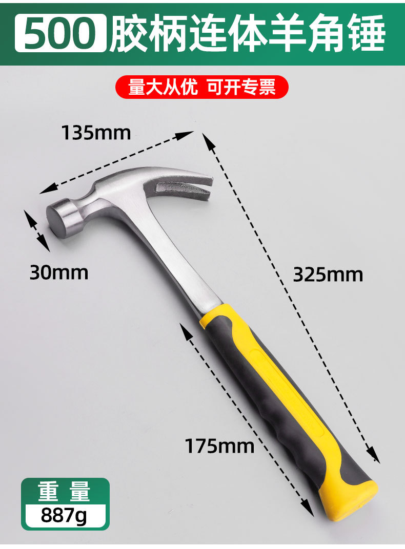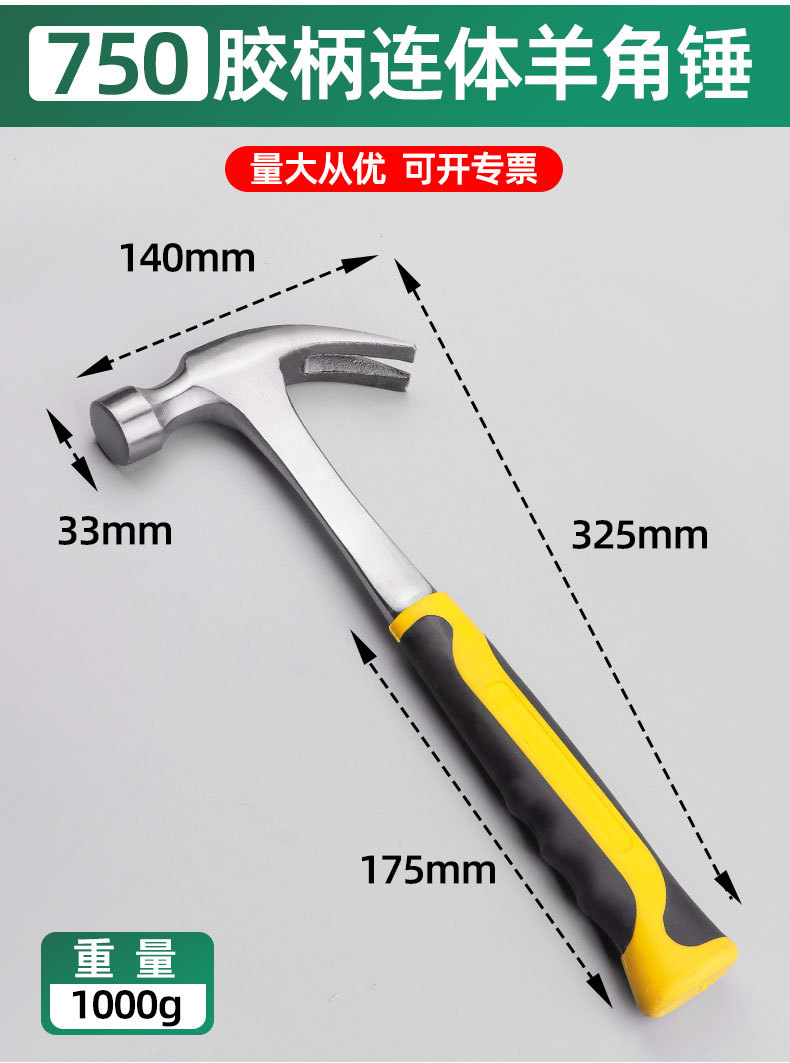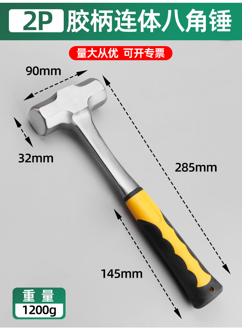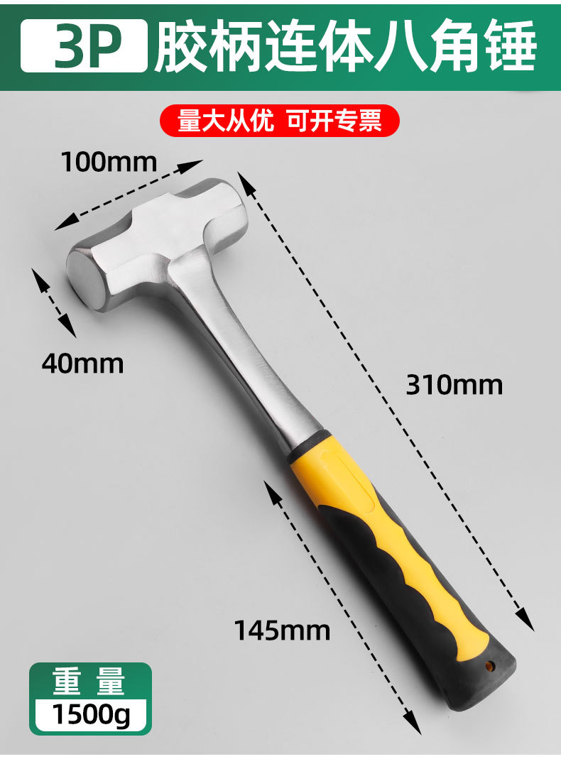 Fabricante en stock martillo de una pieza martillo de garra multifuncional martillo octogonal martillo de una pieza martillo sólido mano de una pieza