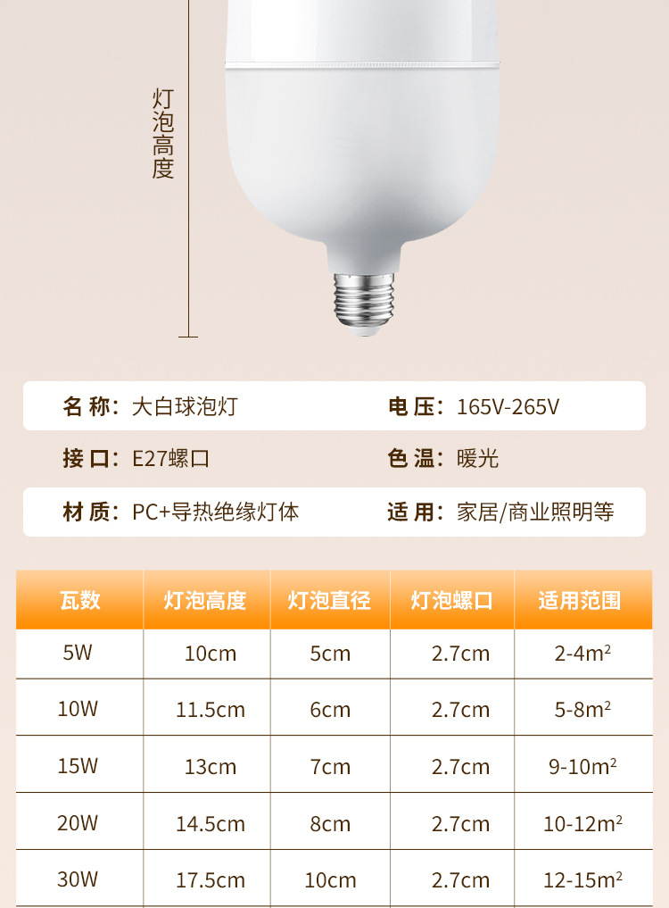Bombilla LED de bajo consumo para uso doméstico, base de rosca E27, luz cálida, protección ocular, iluminación interior de fábrica, alta reproducción cromática, protección ocular.