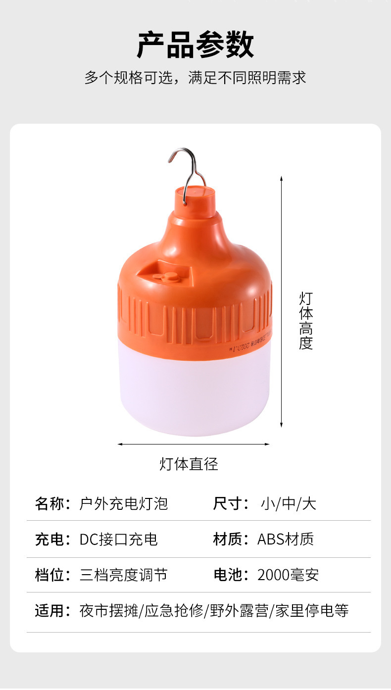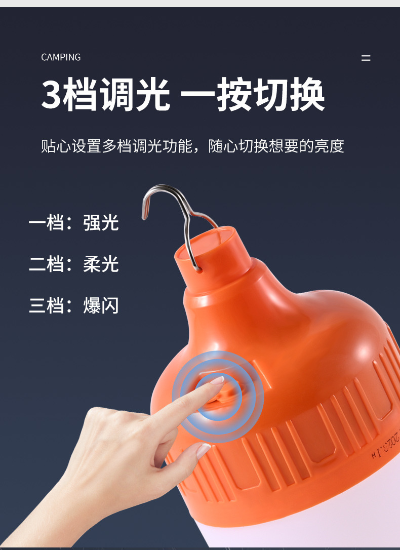 Nueva bombilla recargable led lámpara de carga de emergencia al aire libre lámpara de campamento impermeable batería de larga duración lámpara de bola de puesto del mercado nocturno