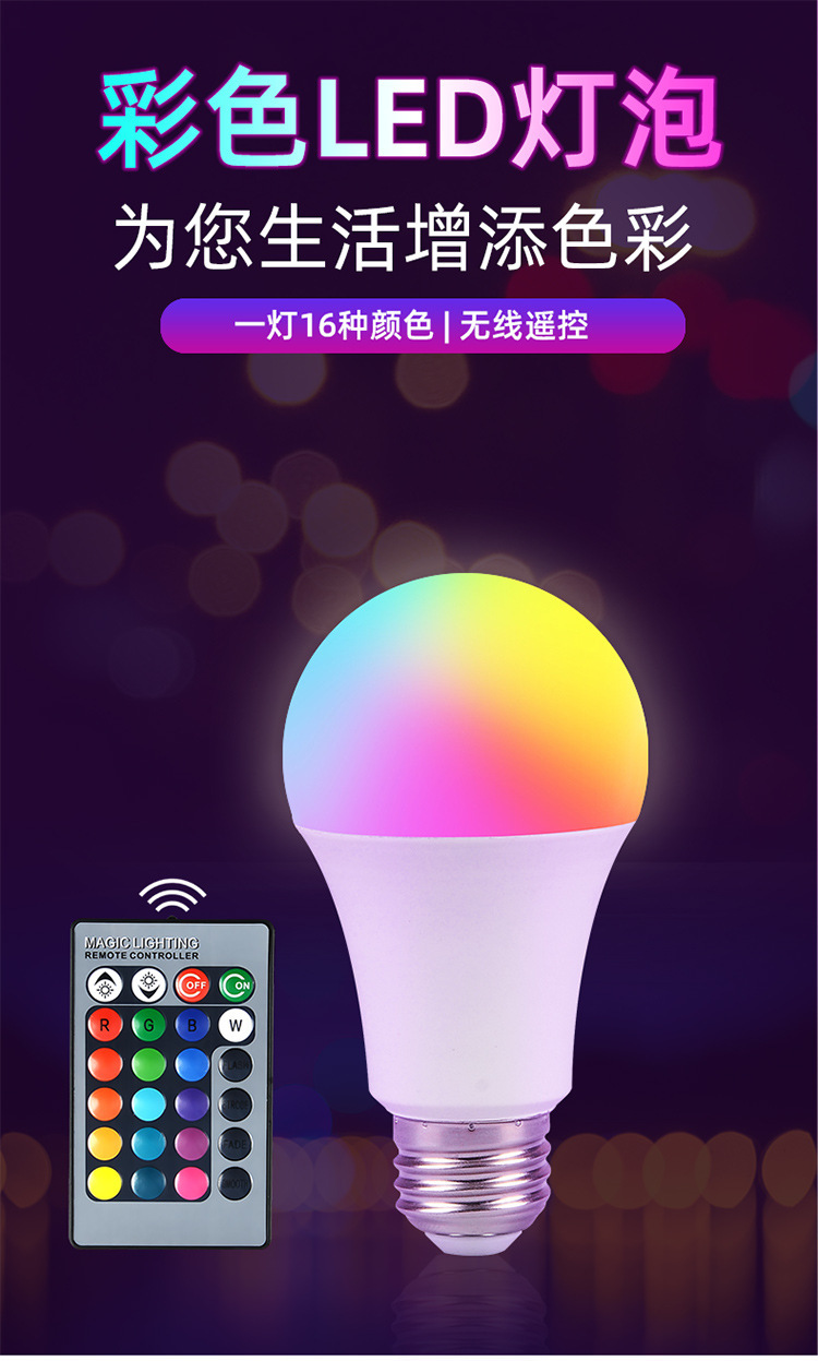 Bombilla de color LED de presión ancha transfronteriza e27 luz de bola de tornillo RGB luz de cambio de color brillante bombilla de atmósfera de control remoto inalámbrico