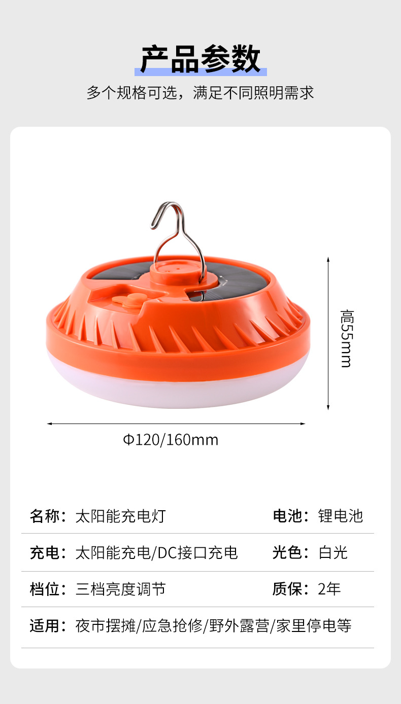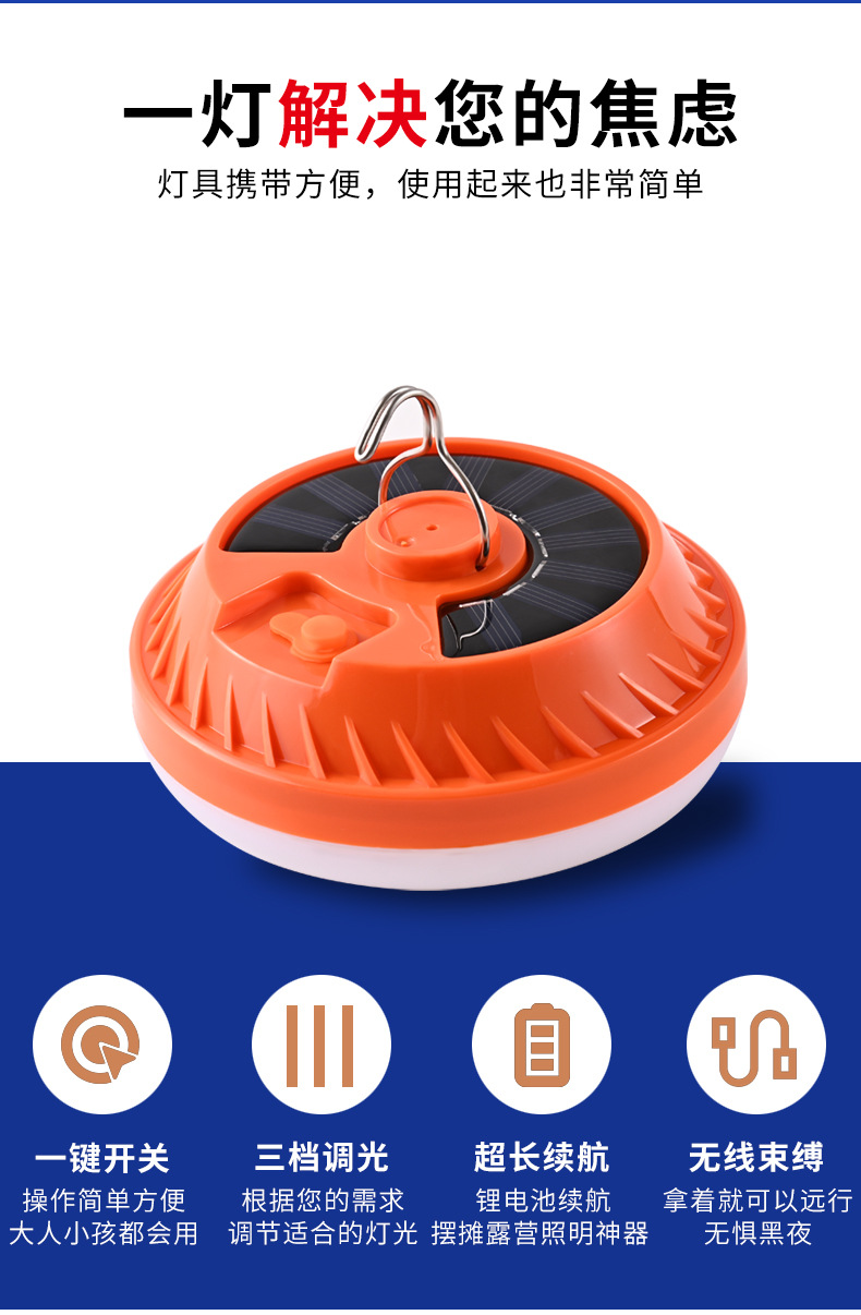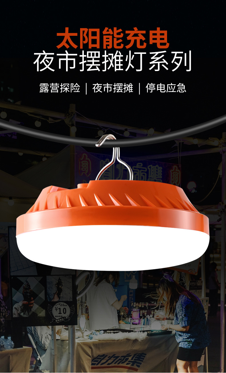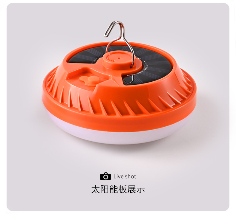 Luz de carga solar, luz de camping, luz para puesto de comida, luz de emergencia para cortes de energía, luz LED UFO con gancho, bombilla de iluminación de emergencia