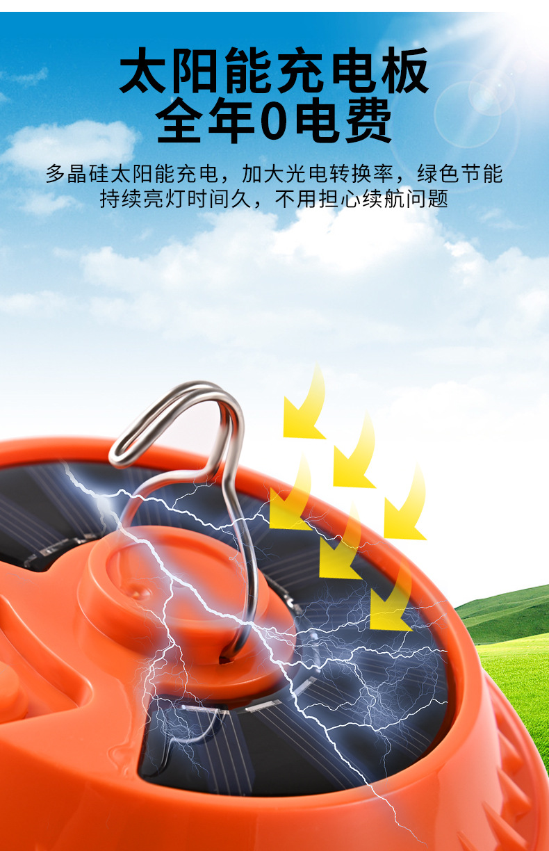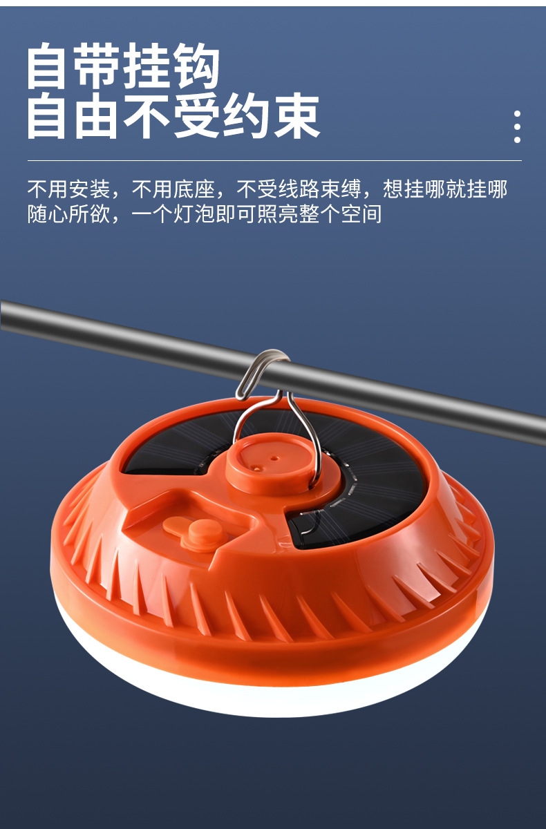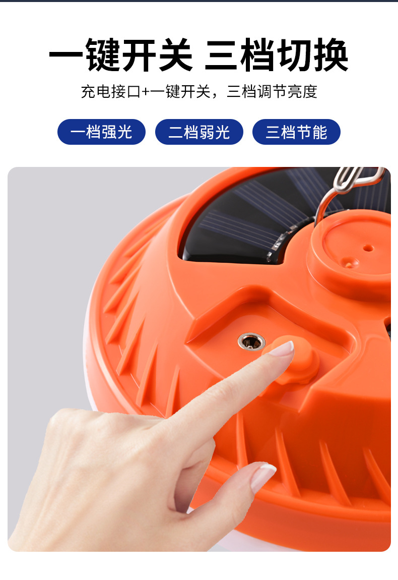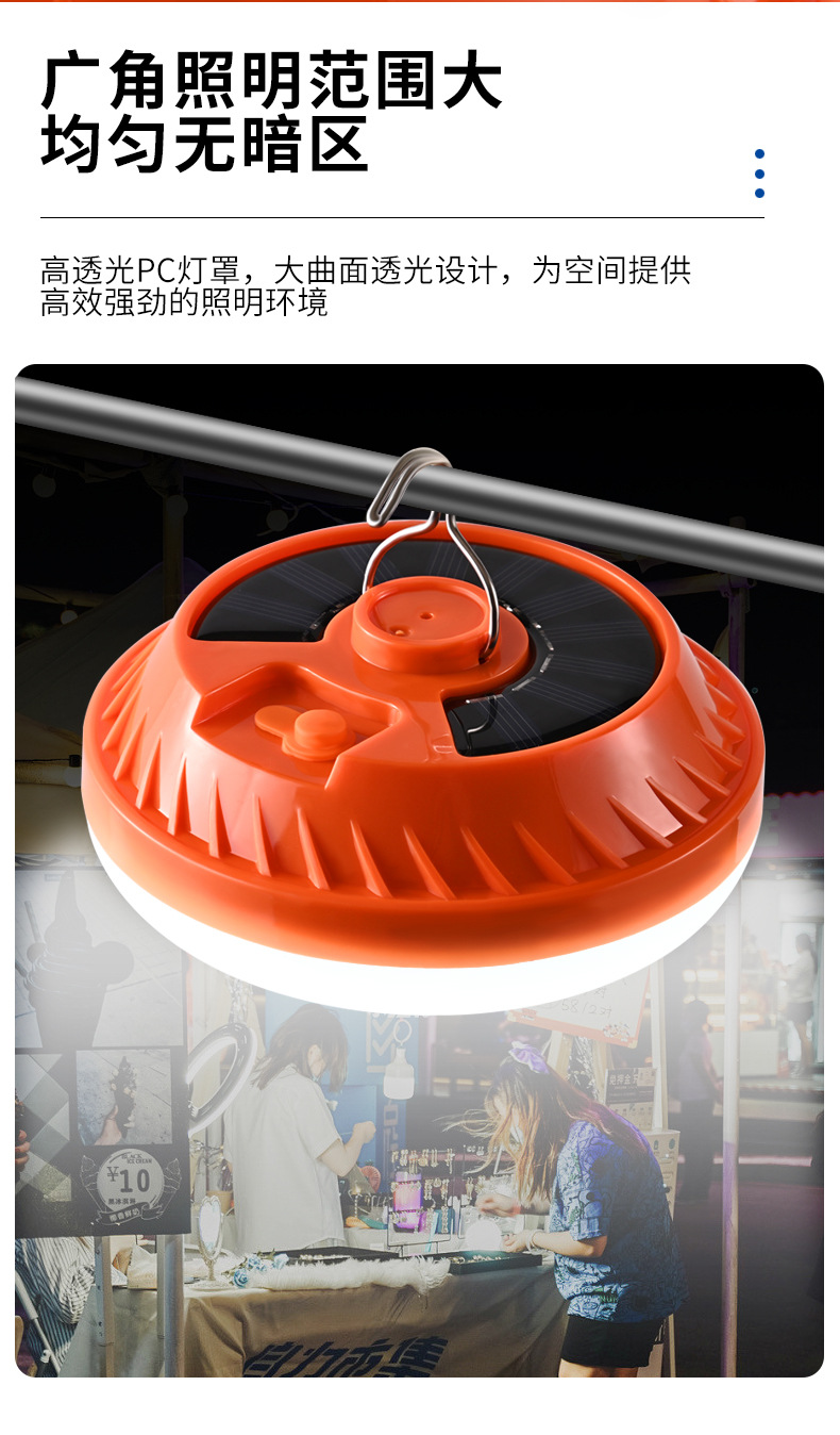 Luz de carga solar, luz de camping, luz para puesto de comida, luz de emergencia para cortes de energía, luz LED UFO con gancho, bombilla de iluminación de emergencia