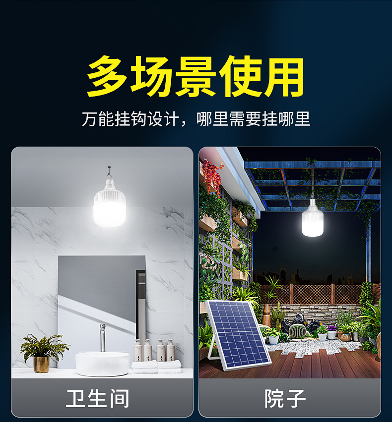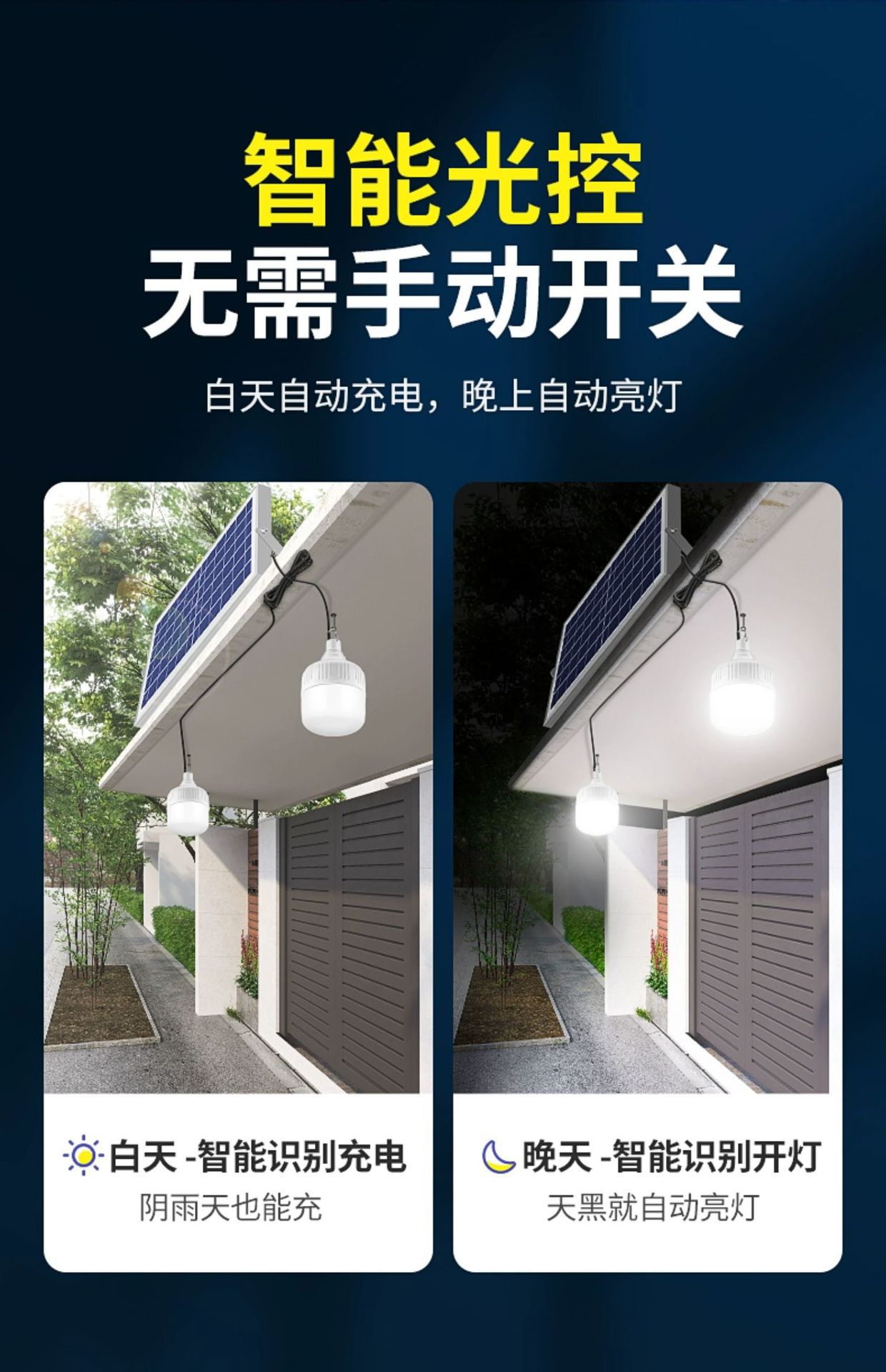 Lámpara Solar de Jardín, Luz Exterior, Farola Doméstica, Bombilla de Iluminación Súper Brillante, Bombilla con Sensor Dividido Recargable a Prueba de Agua