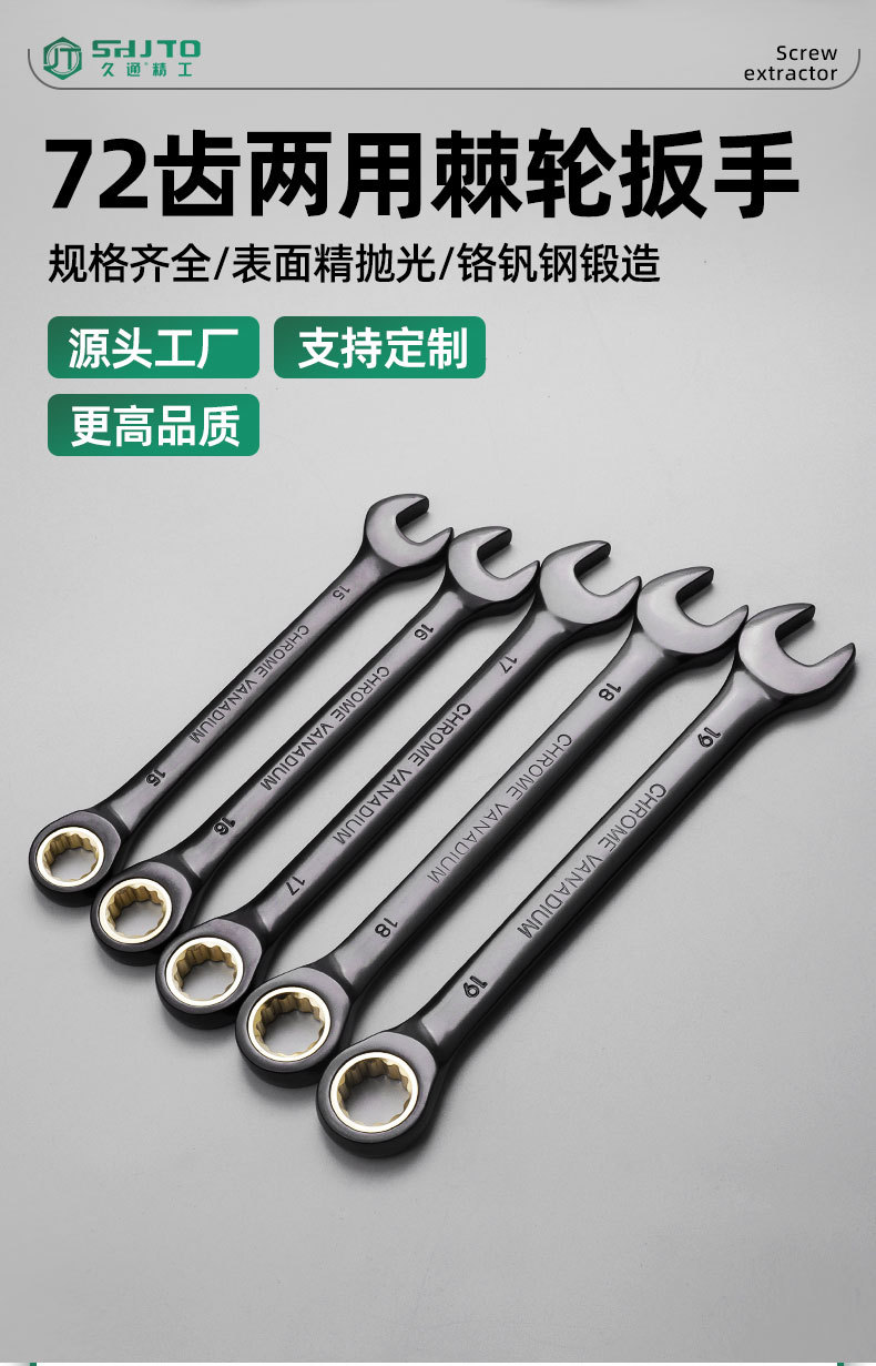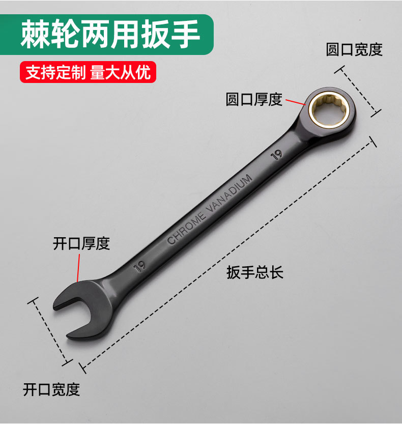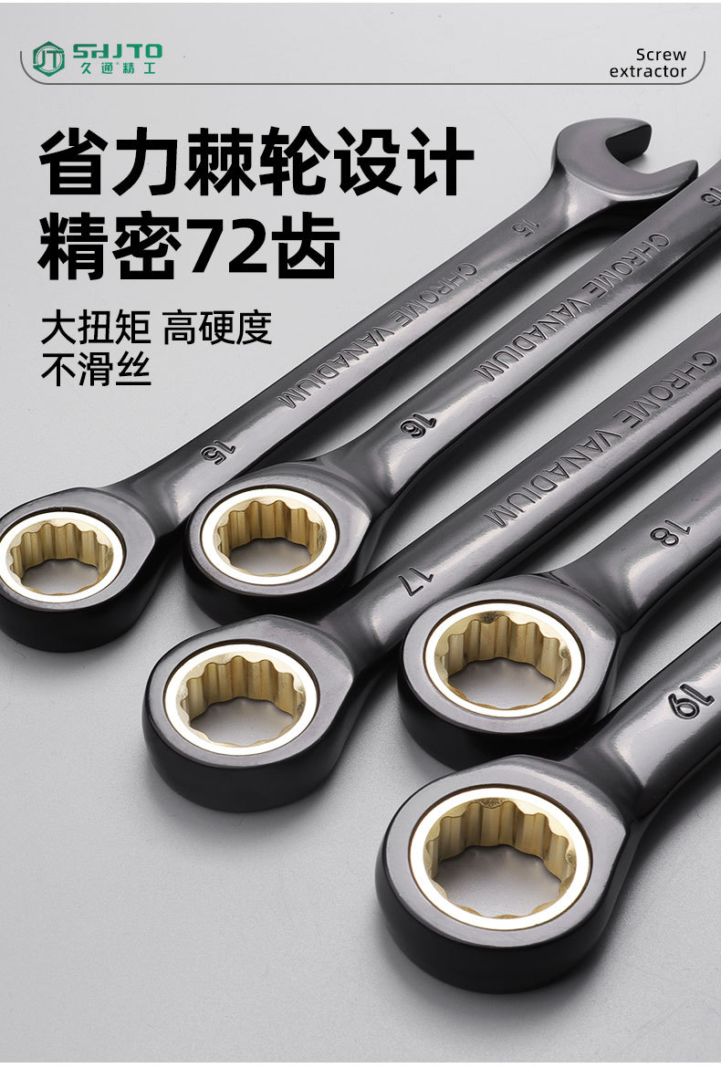 Fábrica directa métrica 72 dientes dorados negros llave de trinquete cabeza fija abertura de ciruela llave rápida de doble propósito