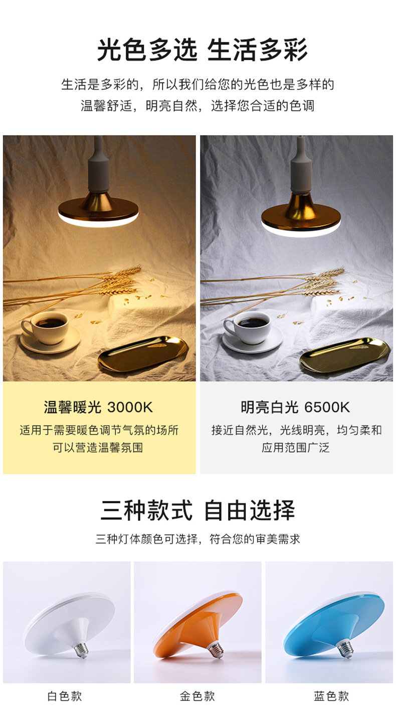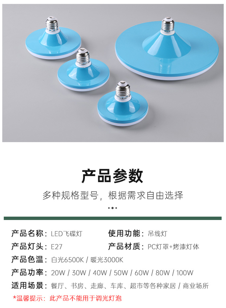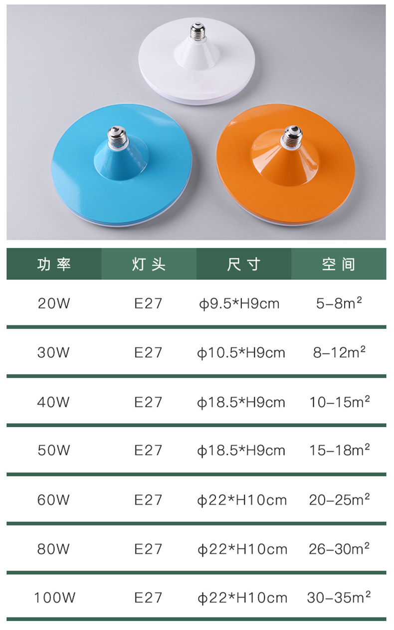 | Potencia | 20W luz blanca E27 luz de plato volador azul, 30W luz blanca E27 luz de plato volador azul, 40W luz blanca E27 luz de plato volador azul, 50W luz blanca E27 luz de plato volador azul, 60W luz blanca E27 luz de plato volador azul, 80W luz blanca E27 luz de plato volador azul, 100W luz blanca E27 luz de plato volador azul |