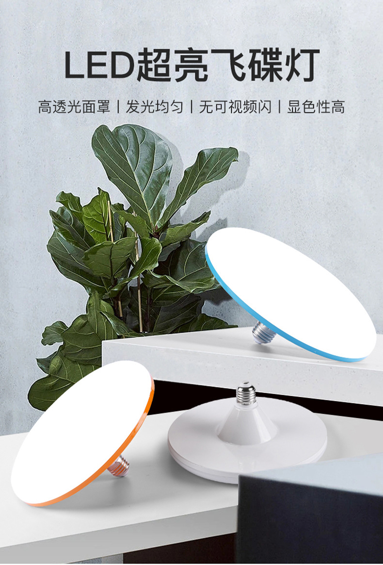 lámpara LED lámpara de plato volador ultra brillante hogar ahorro de energía a prueba de agua lámpara de protección de ojos luz blanca E27 tornillo alto ahorro de energía lámpara