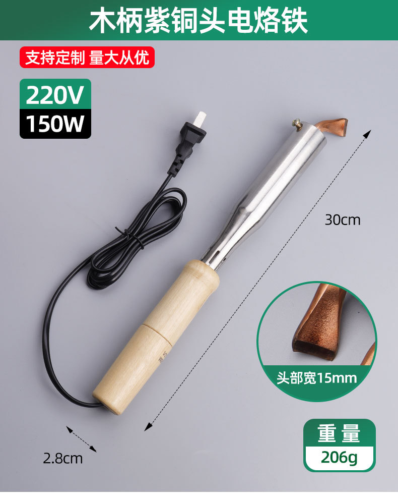 Linyi hardware mango de madera AC larga vida punta curva soldador eléctrico 150W externo caliente soldador eléctrico