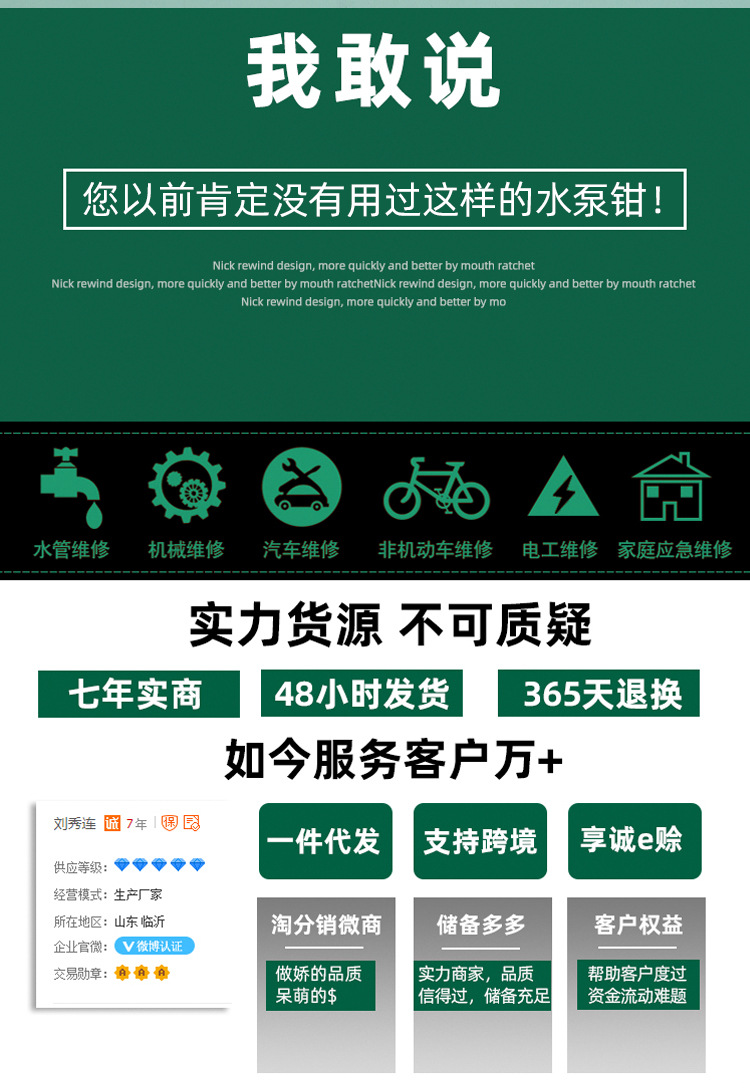 Fábrica al por mayor Jiutong alicates de bomba de agua ajustable de siete velocidades de 8 pulgadas de 10 pulgadas de 12 pulgadas alicates de bomba de agua de baño abierto para el hogar