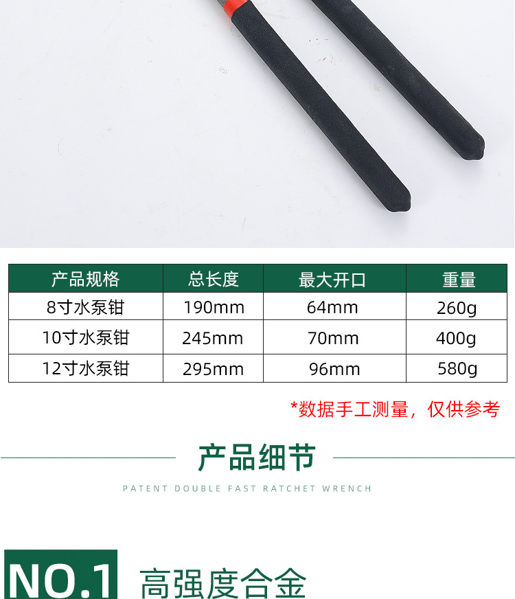 | Modelo | 80 pinzas de bomba de agua de 8 pulgadas,60 pinzas de bomba de agua de 10 pulgadas,60 pinzas de bomba de agua de 12 pulgadas,Alicates de bomba de agua de 8 pulgadas (inserción de tarjeta),Alicates de bomba de agua de 10 pulgadas (inserción de tarjeta),Alicates de bomba de agua de 12 pulgadas (inserción de tarjeta) |