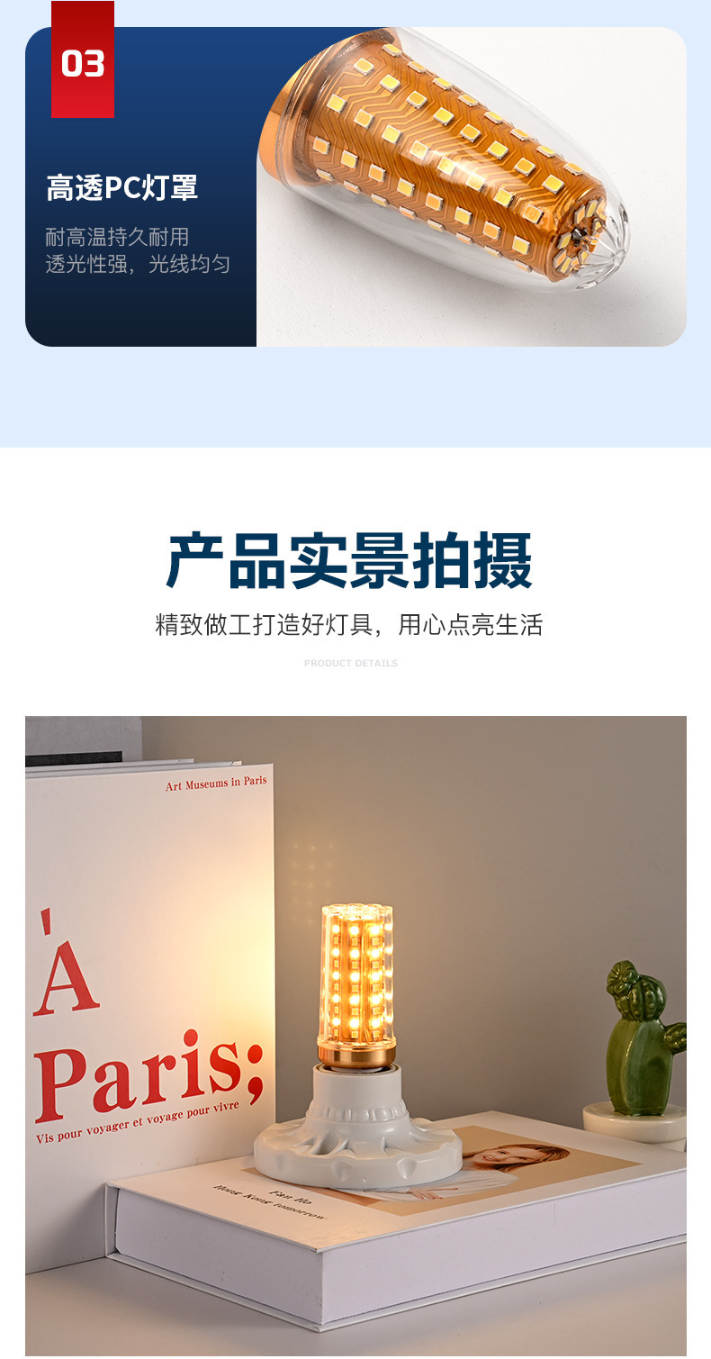 lámpara de maíz LED de espectro completo lámpara de cristal doméstica lámpara de escritorio de alto rendimiento de color e27 lámpara de tornillo lámpara de ahorro de energía súper brillante
