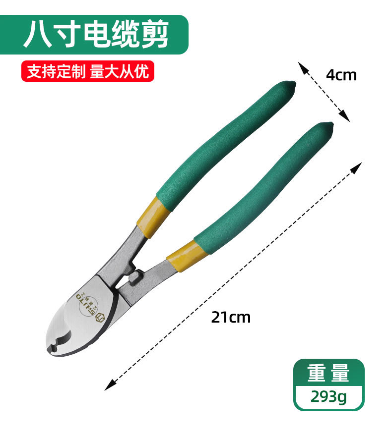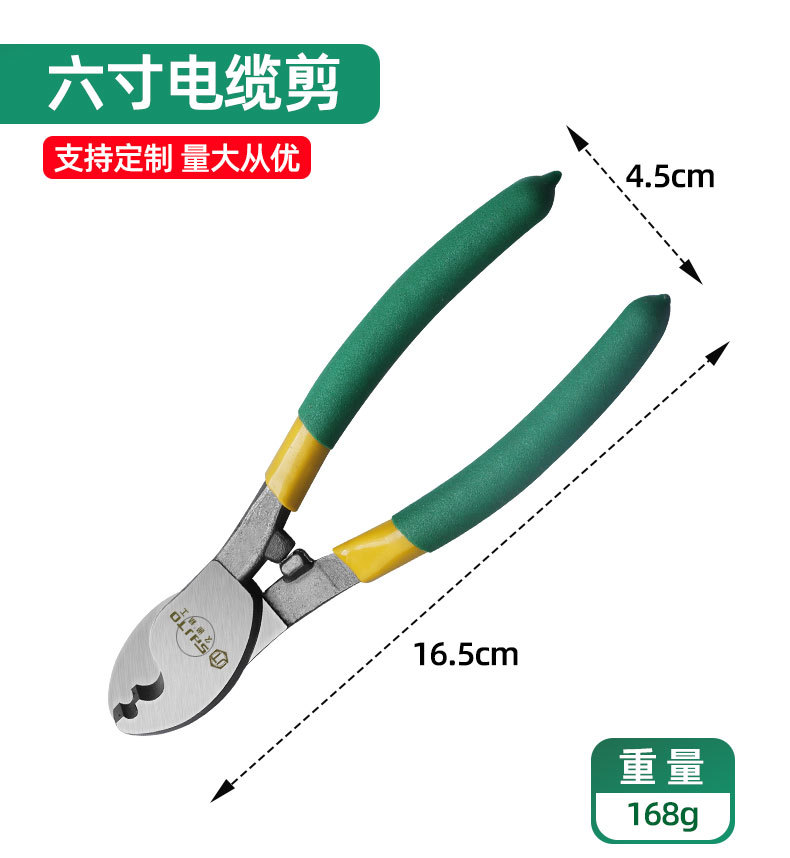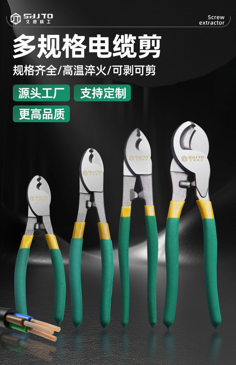 El fabricante vende cortadores de cables Jiutong de 6, 8 y 10 pulgadas con cabezal grande, tijeras para electricistas y cortadores de cables.