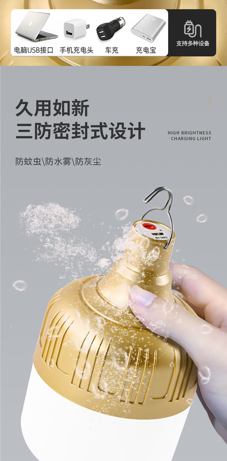lámpara recargable led stand lámpara colgante al aire libre de gran capacidad portátil de larga duración camping lámpara de emergencia