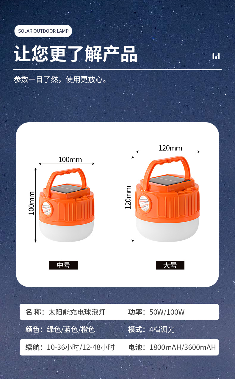 | Color | 50W (pequeño) lámpara portátil naranja de campamento, 50W (pequeño) lámpara portátil verde de campamento, 50W (pequeño) lámpara portátil azul de campamento, 100W (gran) lámpara portátil naranja de campamento, 100W (gran) lámpara portátil verde de campamento, 100W (gran) lámpara portátil azul de campamento |