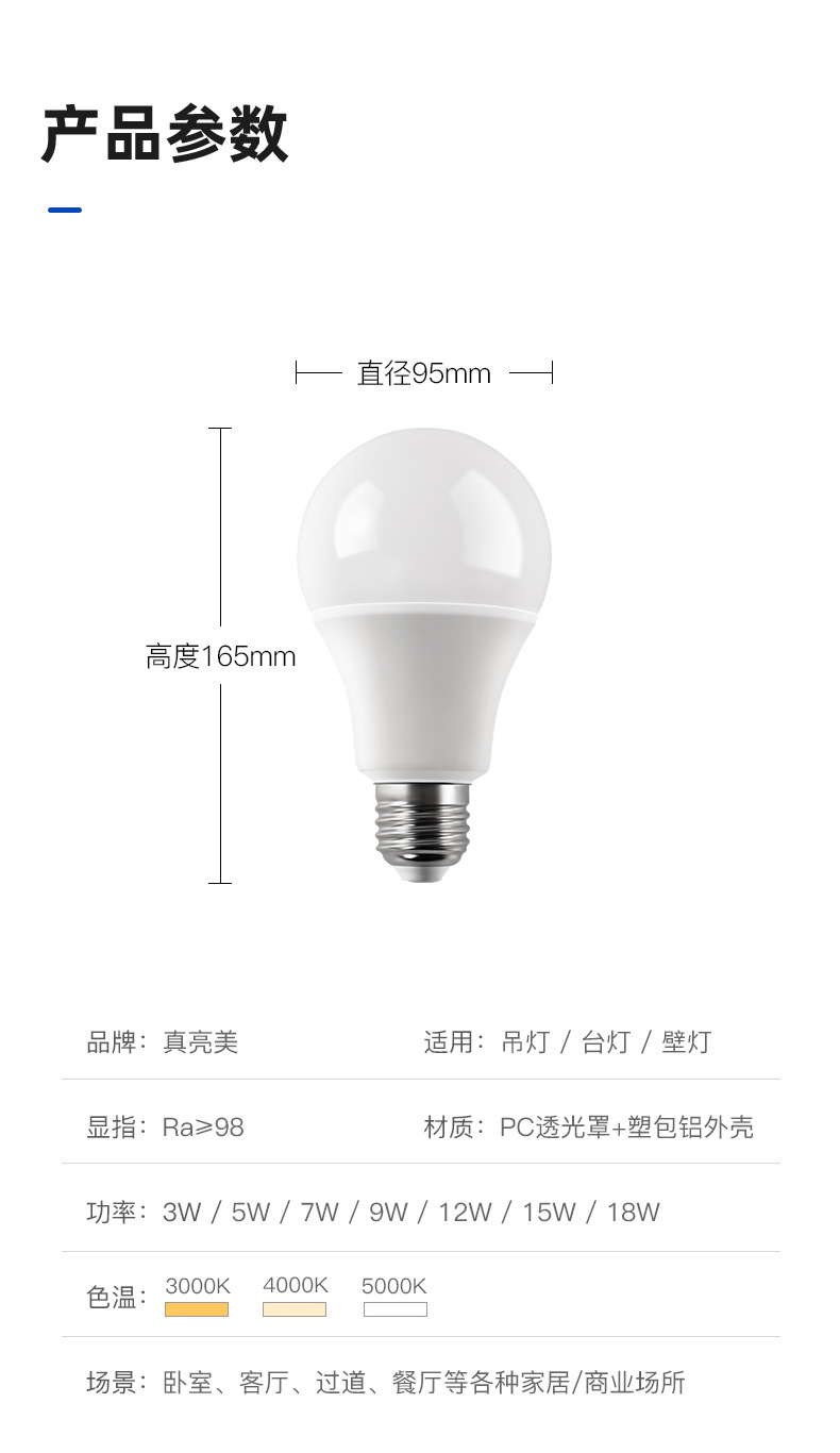 LED regulable bombilla hogar ajustable temperatura de color resaltar bombilla lámpara ancho presión bombilla lámpara independiente fuente de luz