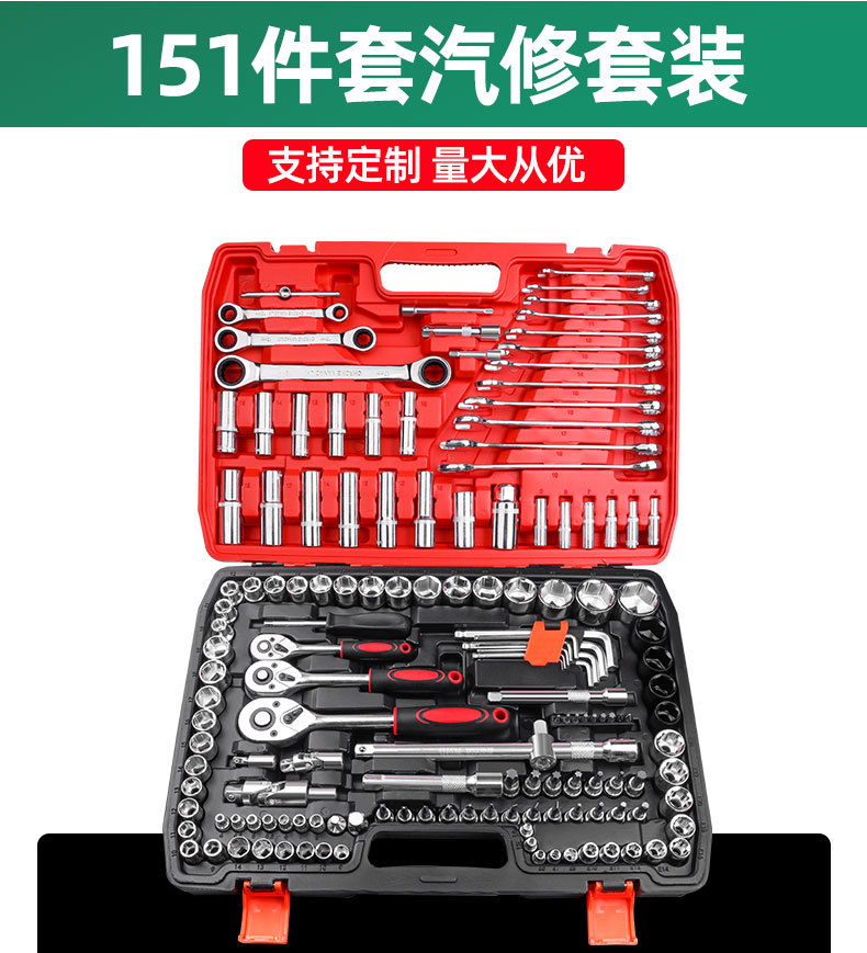151 piezas de herramientas de reparación de automóviles integrales CRV material resistente al desgaste llave de manga anti-fabricación conjunto completo