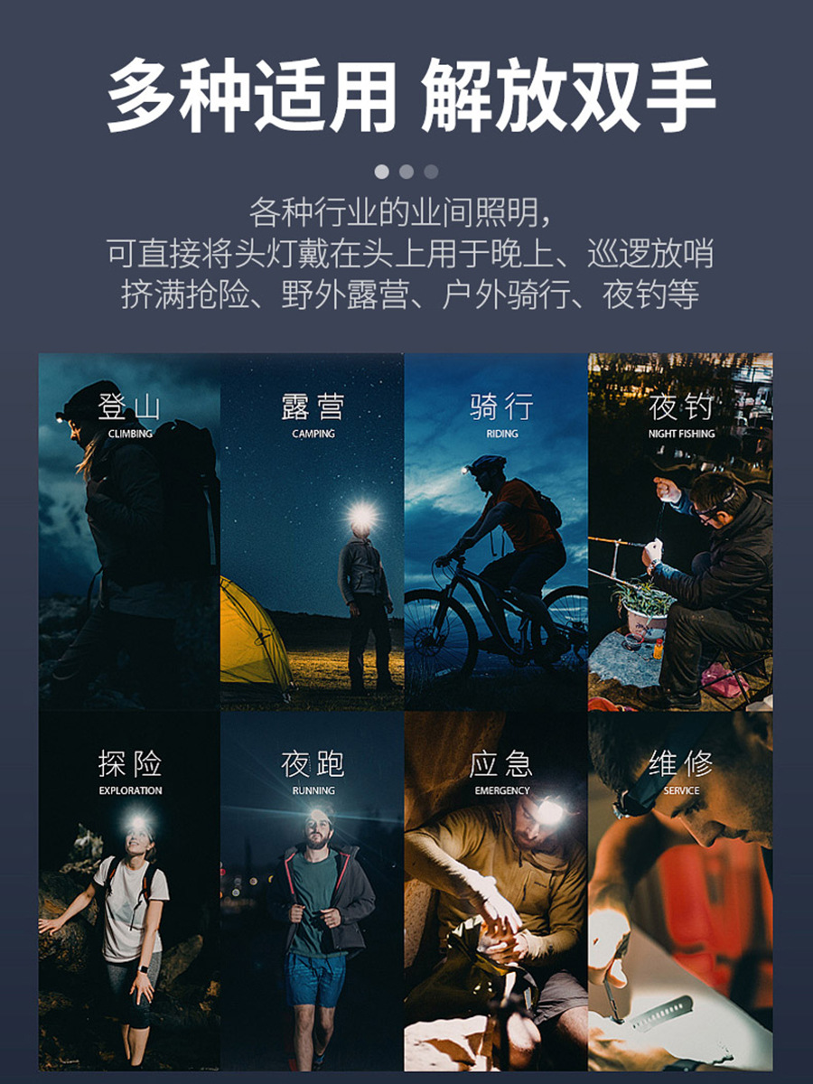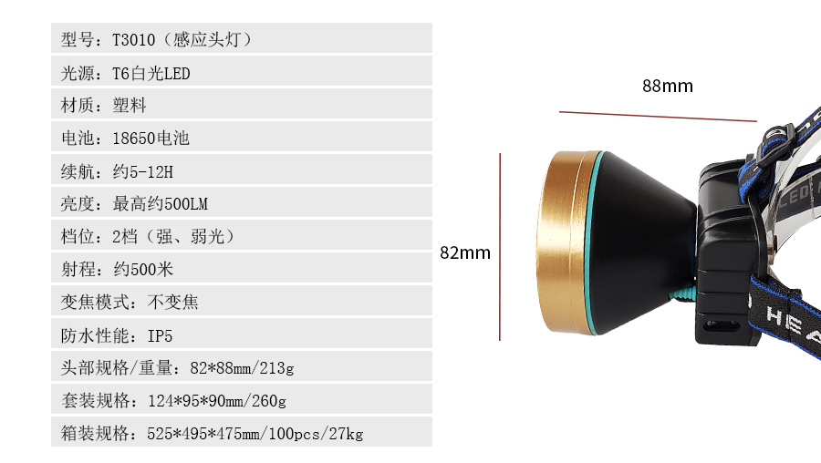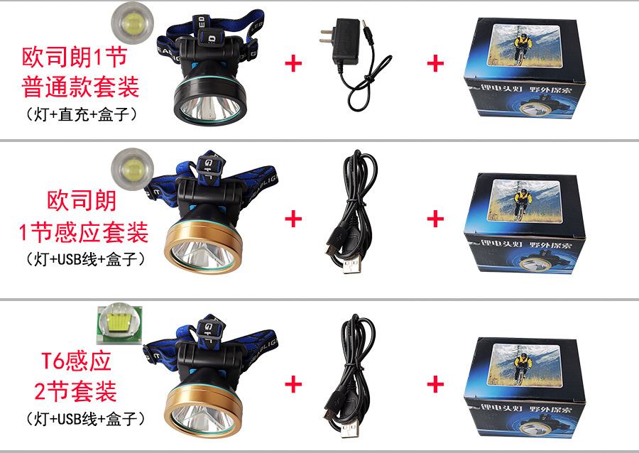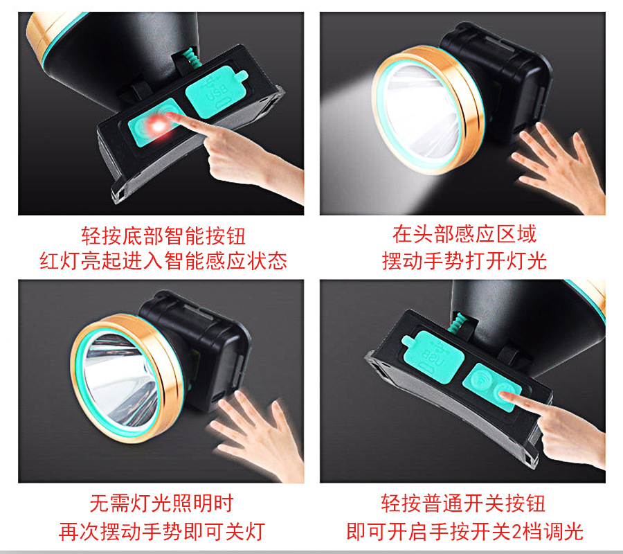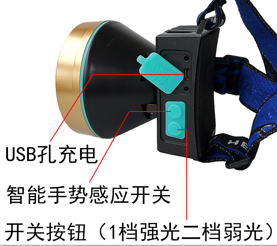 Luces luminosas de inducción T6 de luces luminosas USB recargables lámpara de pesca nocturna iluminación al aire libre lámpara LED montada en la cabeza