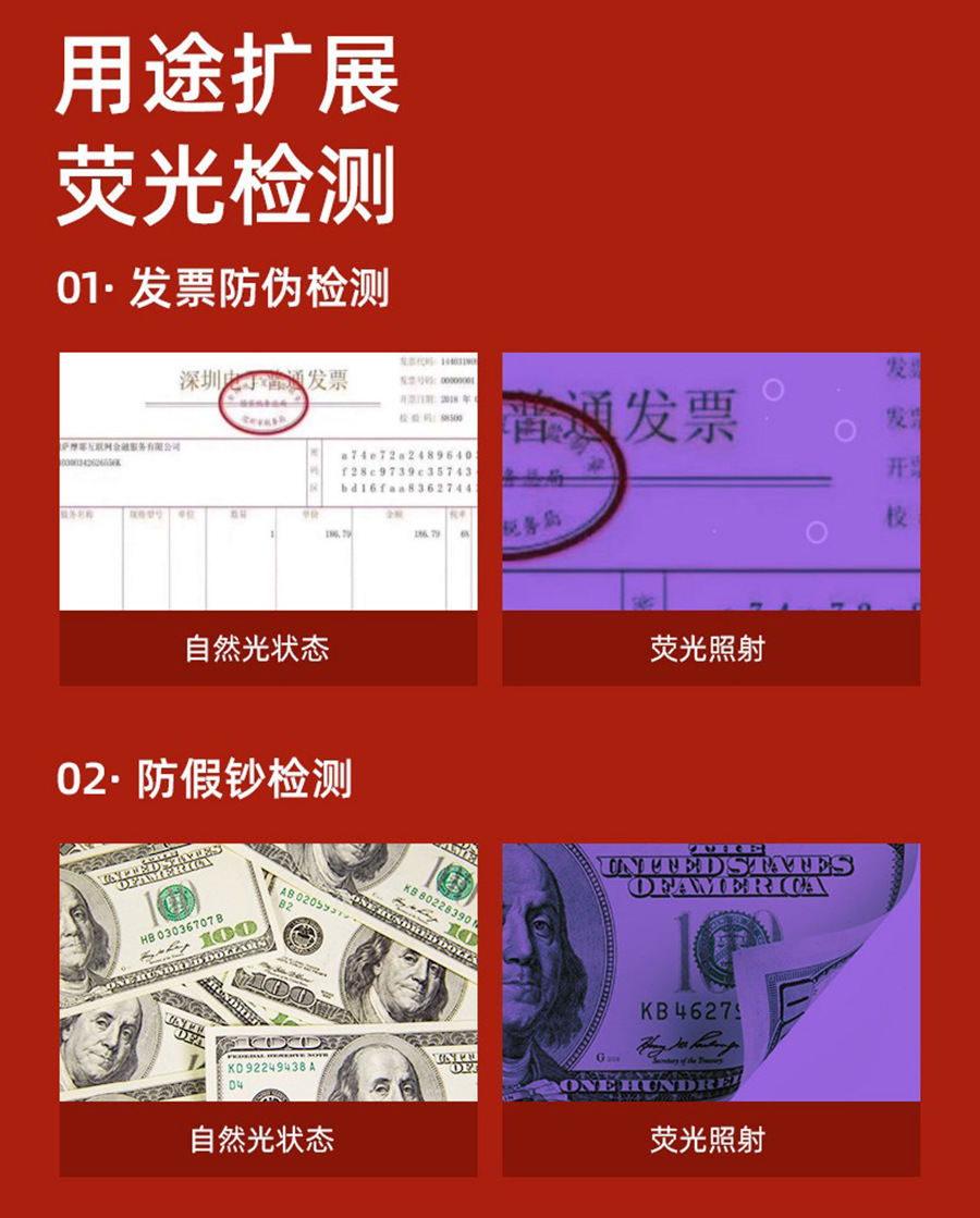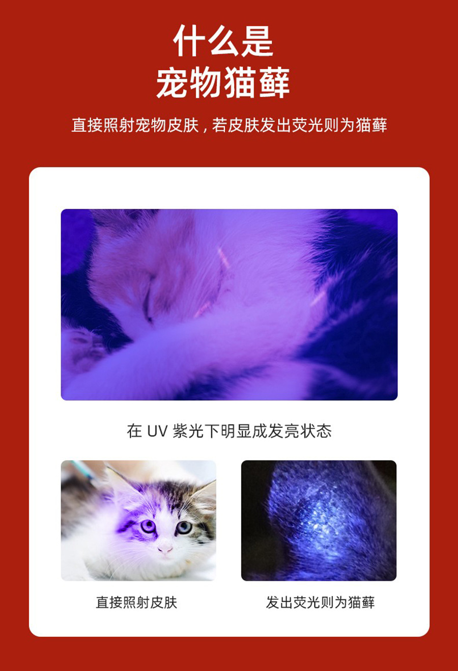 Filtración de luz UV iluminación de luz violeta gatos linterna de detección de fluorescencia portátil luz lateral compacta iluminación de luz lateral mini