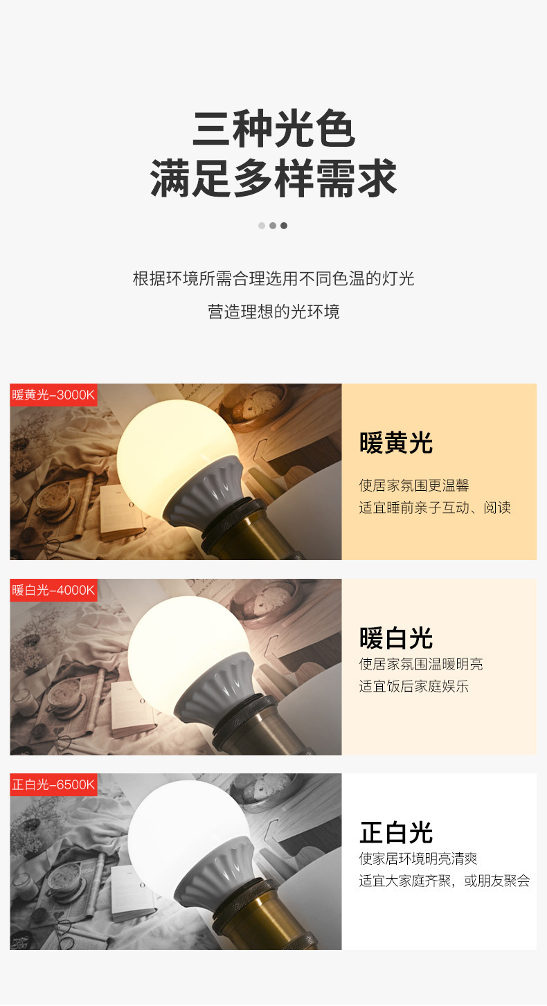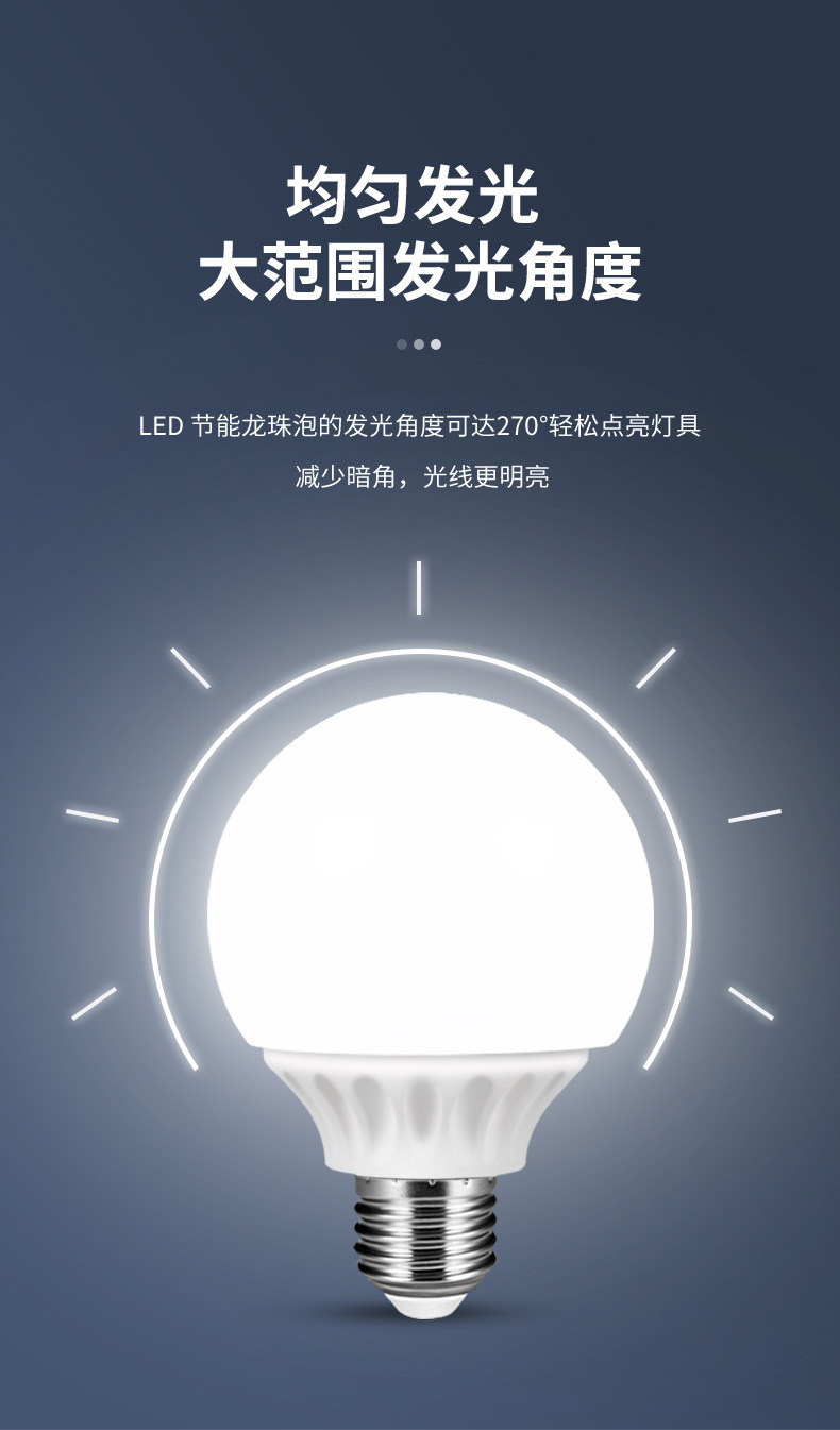 LED bola de dragón bombilla e27 tornillo lámpara doméstica de ahorro de energía fuente de luz de reemplazo de luz caliente tricolor dimmer frontal bombilla redonda