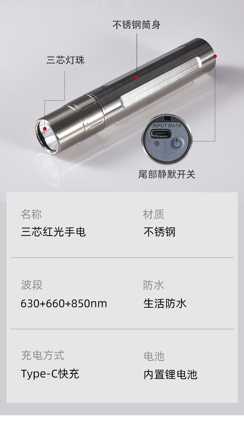 Luz roja roja transfronteriza linterna auxiliar luz infrarroja luz de acero inoxidable 630 660 850nm iluminación