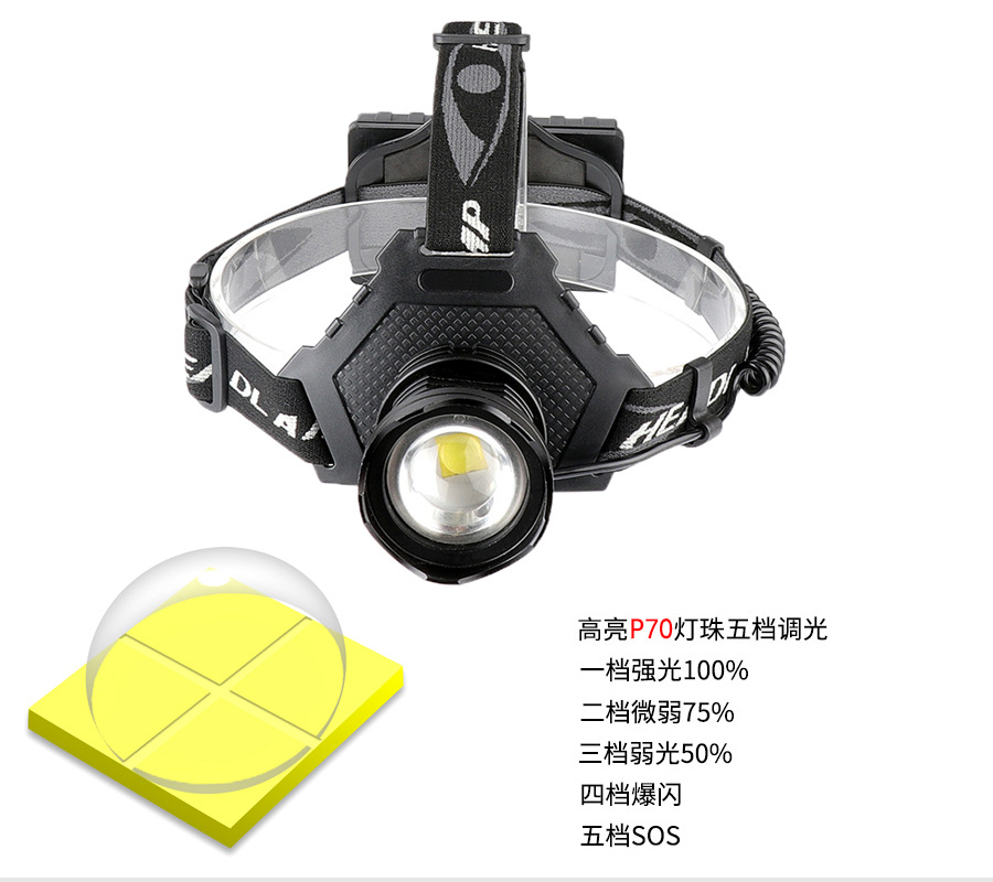 P70 luz frontal fuerte iluminación LED iluminación montada en la cabeza carga al aire libre luz de pesca nocturna banco de energía luz de emergencia equipo linterna