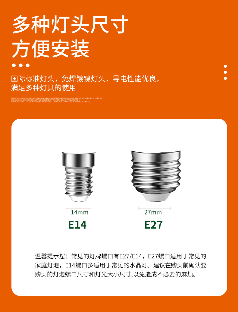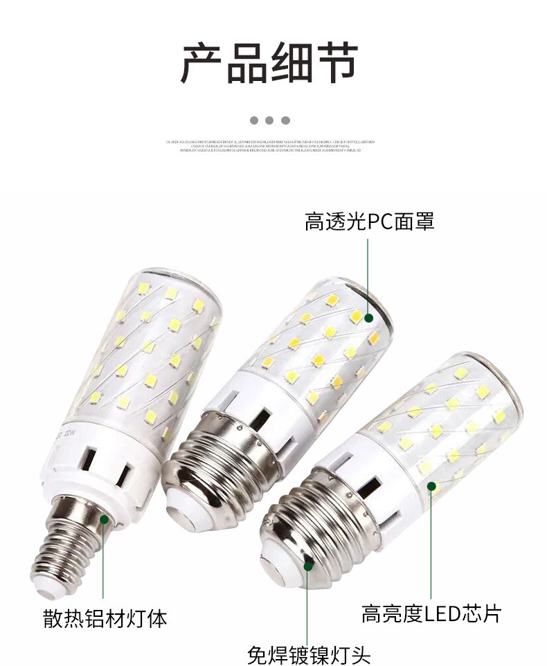 | Potencia | 12W luz blanca E27 lámpara de maíz de plástico, 12W luz cálida E27 lámpara de maíz de plástico, 12W luz blanca E14 lámpara de maíz de plástico, 12W luz cálida E14 lámpara de maíz de plástico, 20W luz blanca E27 lámpara de maíz sin sombra, 20W luz tricolor E27 lámpara de maíz sin sombra, 20W luz blanca E14 lámpara de maíz sin sombra, 20W luz tricolor E14 lámpara de maíz sin sombra, 24W luz blanca E27 lámpara de maíz sin sombra, 24W luz tricolor E27 lámpara de maíz sin sombra, 24W luz blanca E14 lámpara de maíz sin sombra, 24W luz tricolor E14 lámpara de maíz sin sombra |