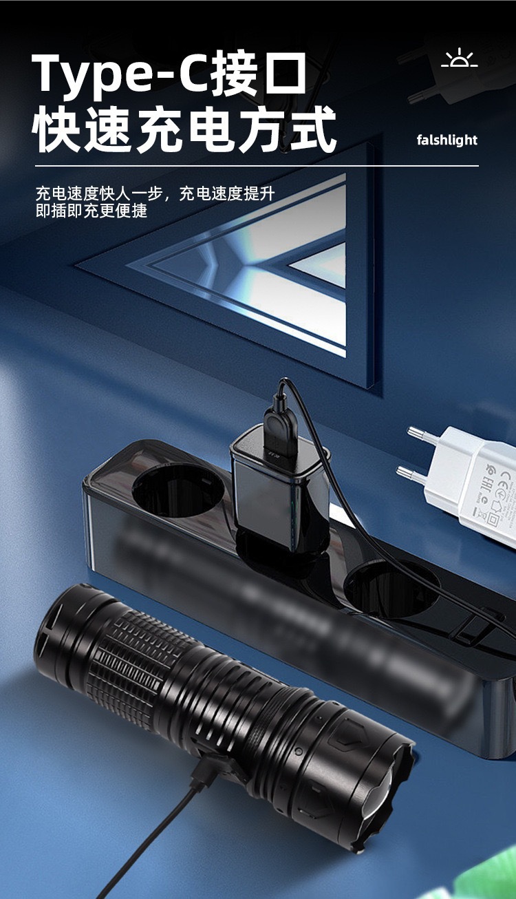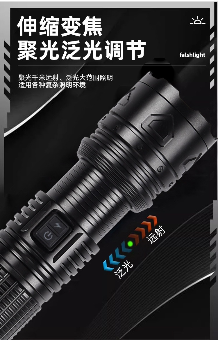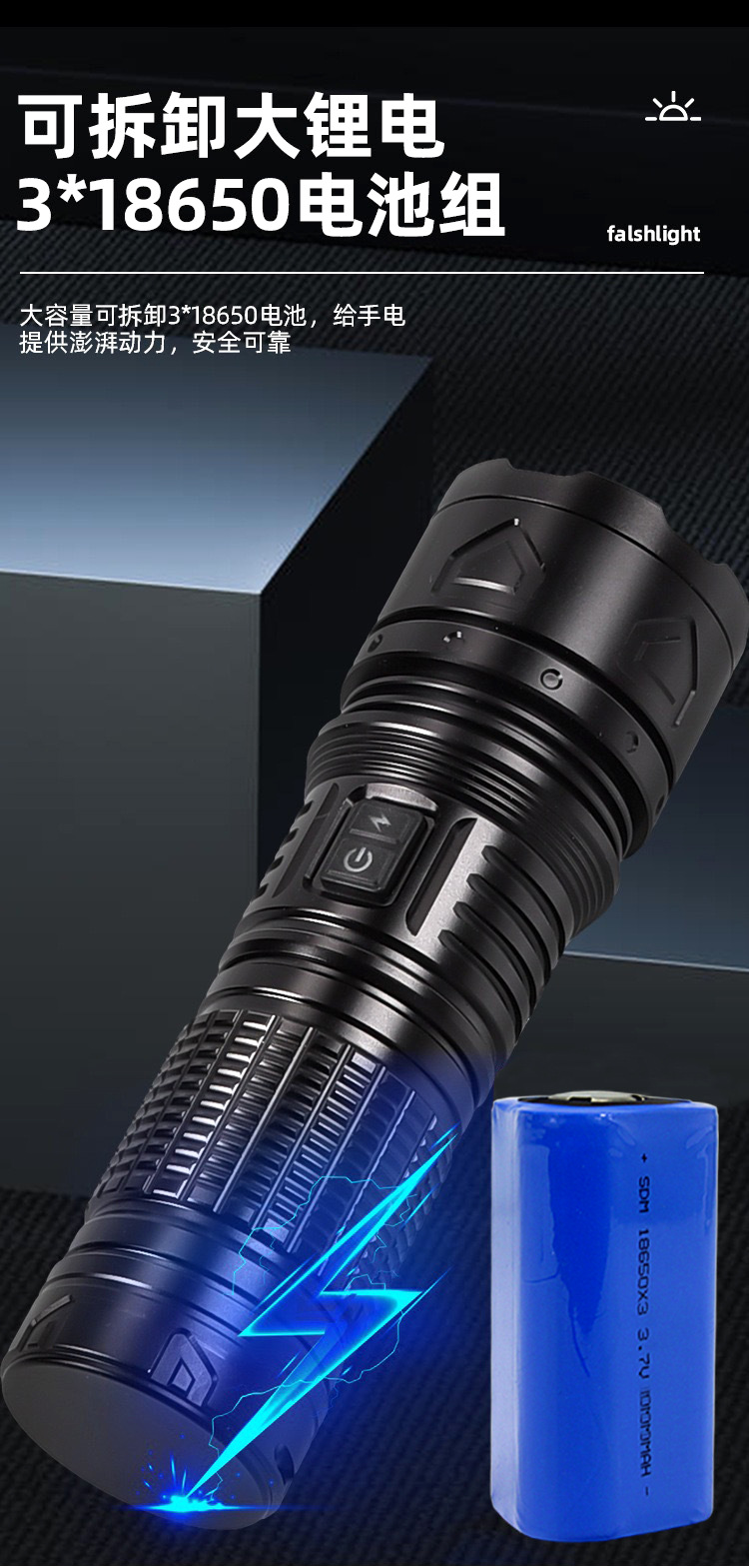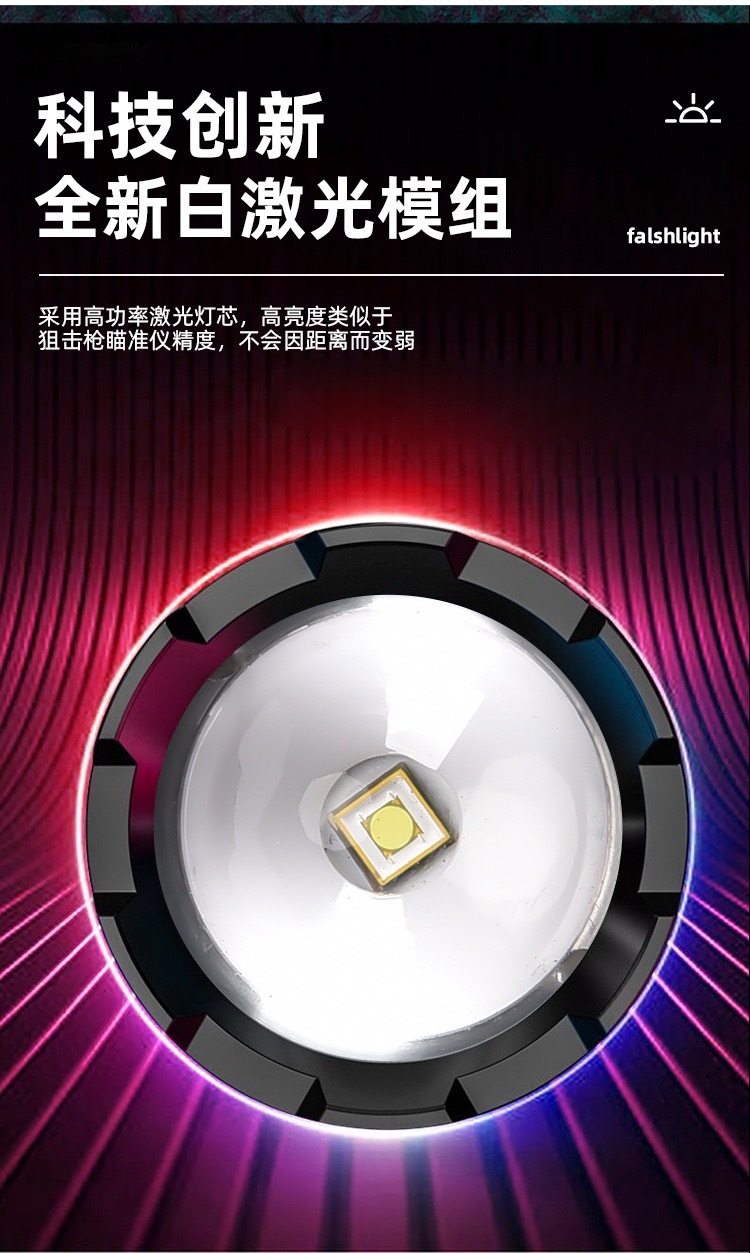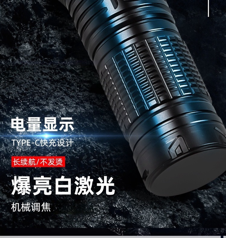 Lintera láser blanca personalizada de luces luminosas de inundación zoom recargable de aleación de aluminio enfocada iluminación LED de largo alcance