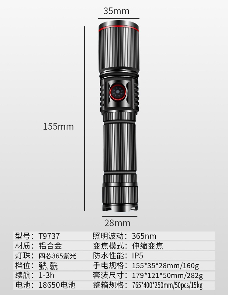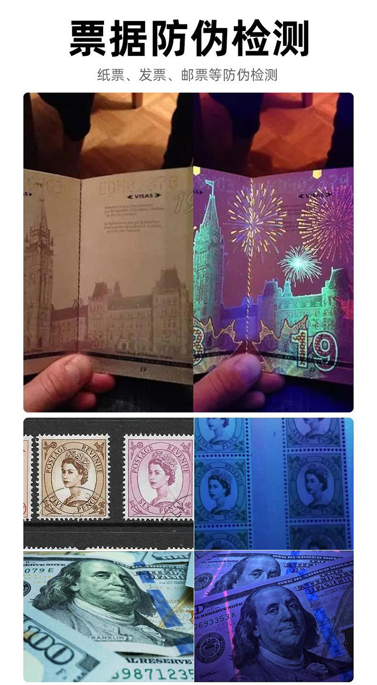 365 linterna de luz violeta detección de fluorescente zoom linterna de luz ultravioleta prueba de máscara de iluminación de identificación antifalsificación