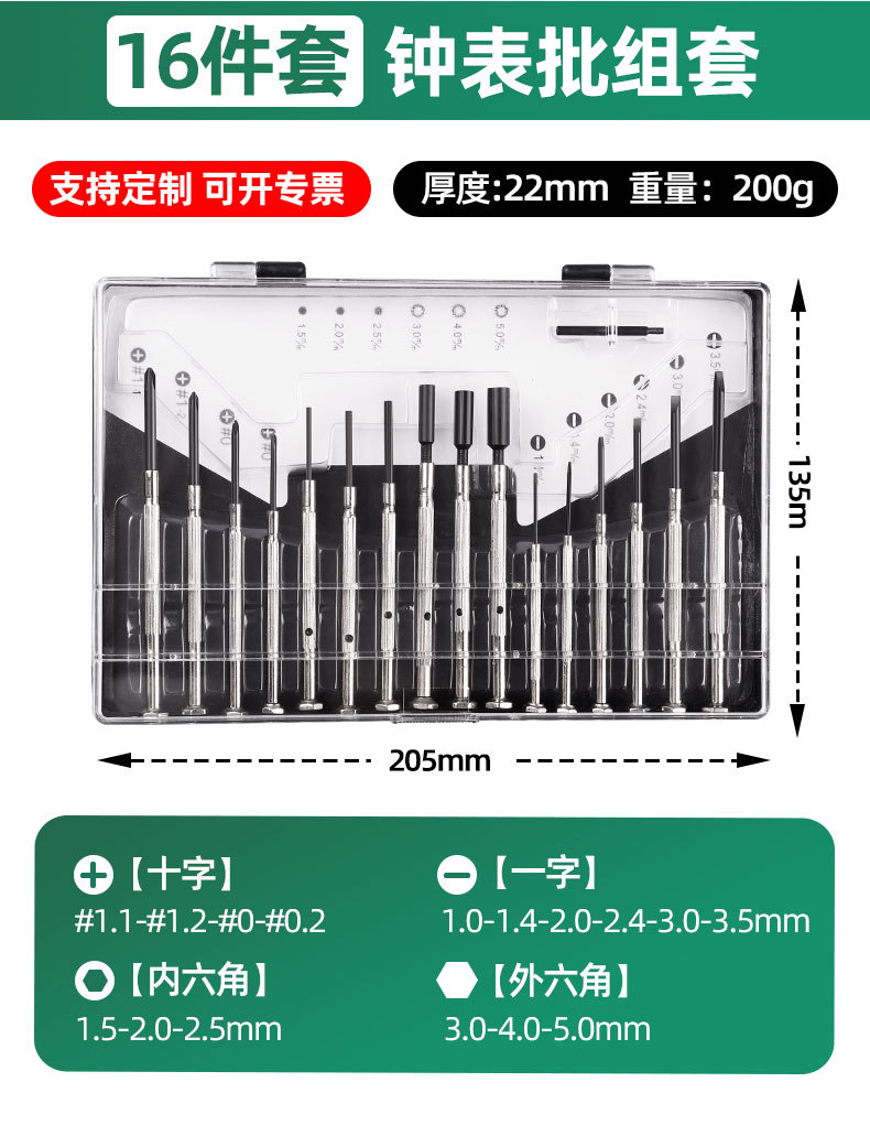Fábrica al por mayor multipropósito pequeño destornillador de precisión reloj de reparación de herramientas móviles reloj lote de 16 piezas