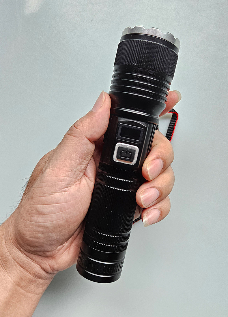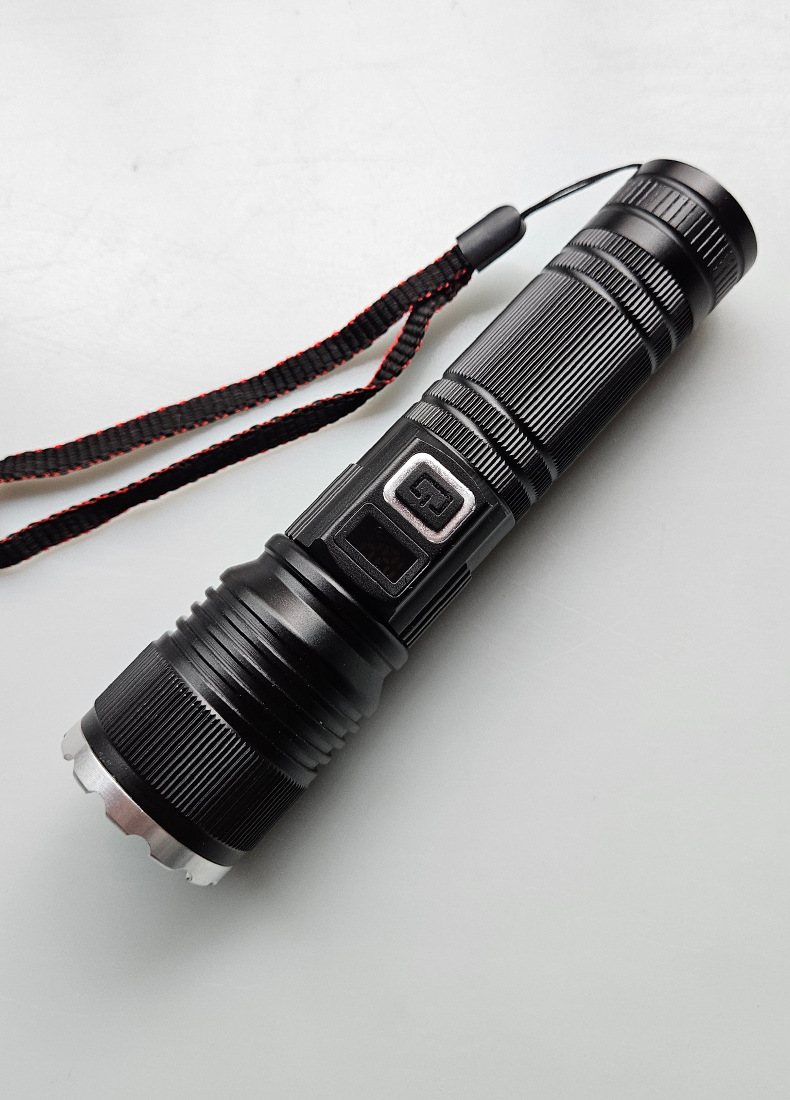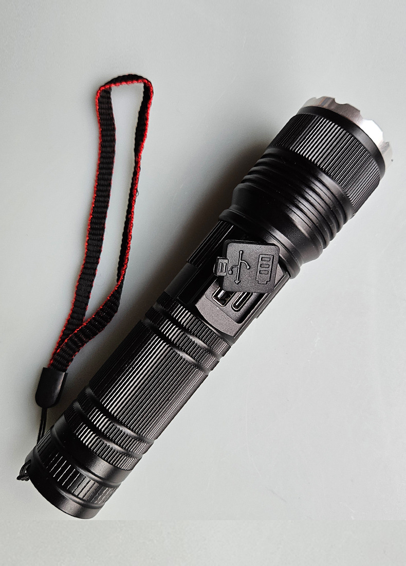 Lintera de luz brillante personalizada al aire libre carga láser blanco telescópico zoom inundación de aleación de aluminio LED pantalla de cinta de lámpara