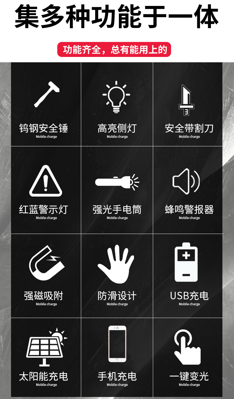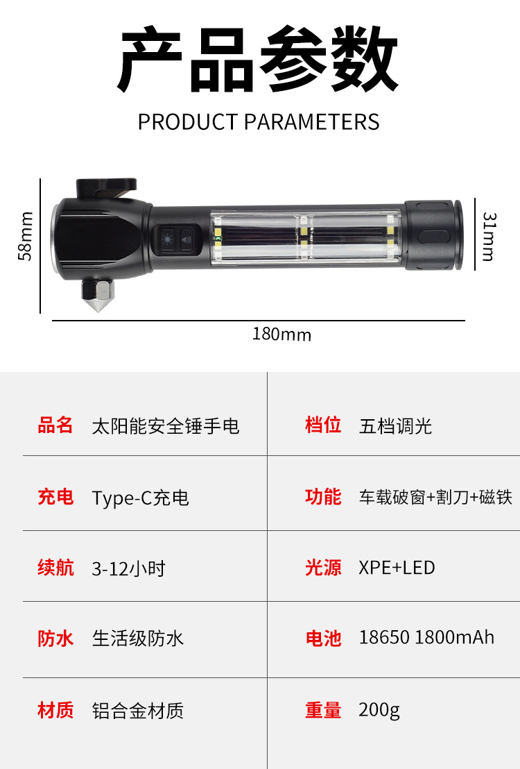 Lintera solar recargable al aire libre multifuncional iluminación de emergencia imán cordón de corte zumbido
